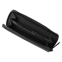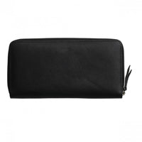 The Sellier long zip-around wallet is made of a soft black genuine leather. The Nina Ricci logo subtly embossed is underlined by delicate saddle stitches.