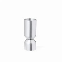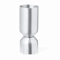 Stainless steel beverage measuring cup with matt finish.