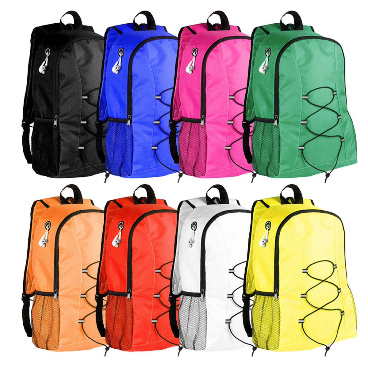 Practical middle pocket with zip closure and headphone outlet, with handy side pockets and elastic string at the front in matching color with the zip. Comfortable and adjustable shoulder straps, padded like the backside. Available in varied and bold