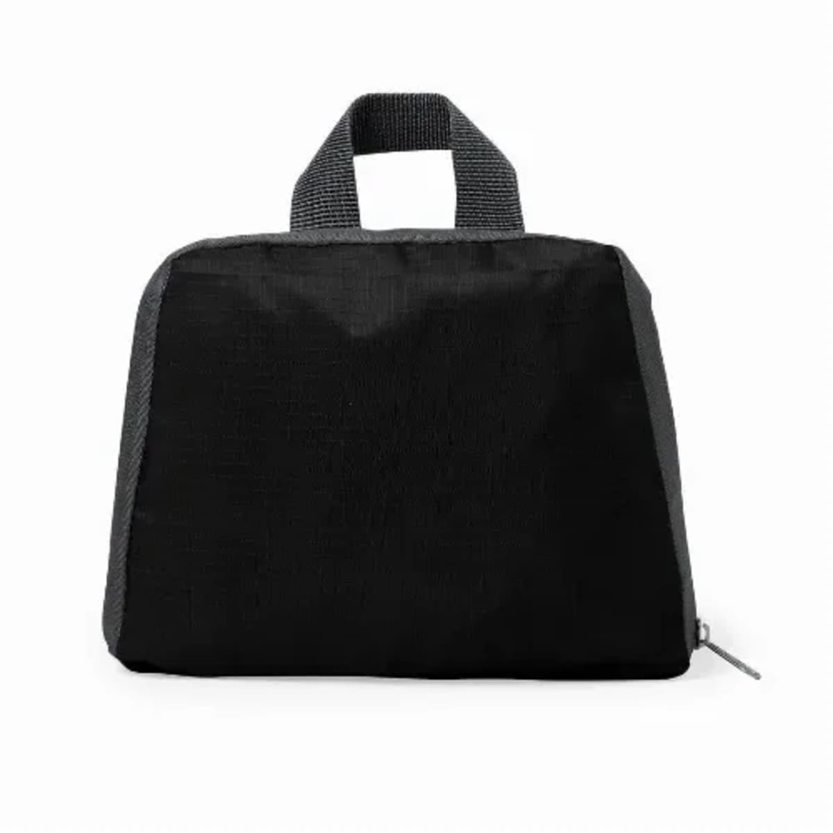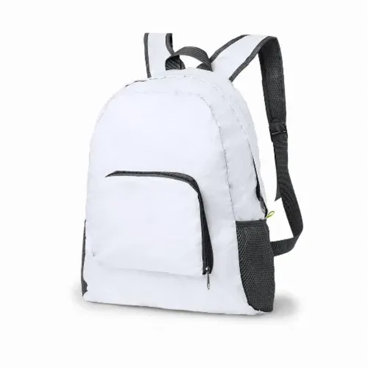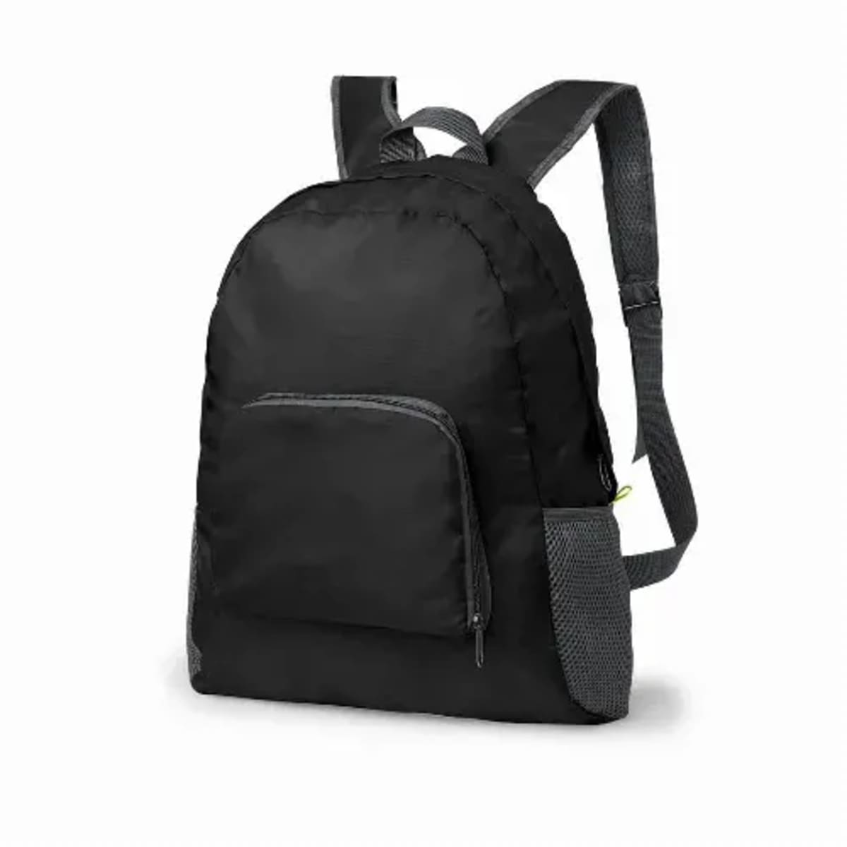 2 compartments with zipper closure and adjustable shoulder straps. Mesh side pockets and small size folding.