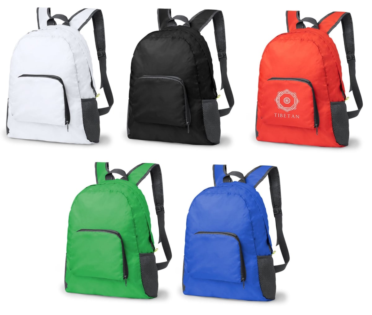 Folding backpack in resistant ripstop material, with an attractive color combination.