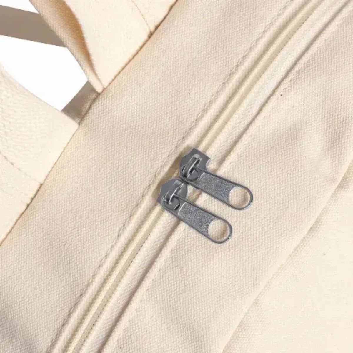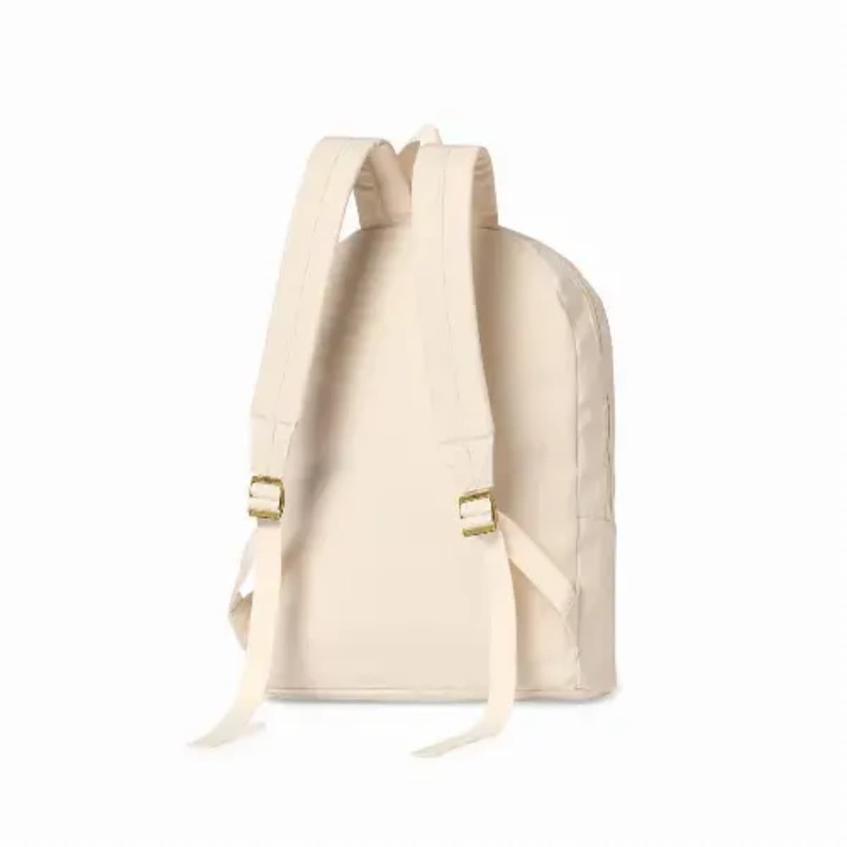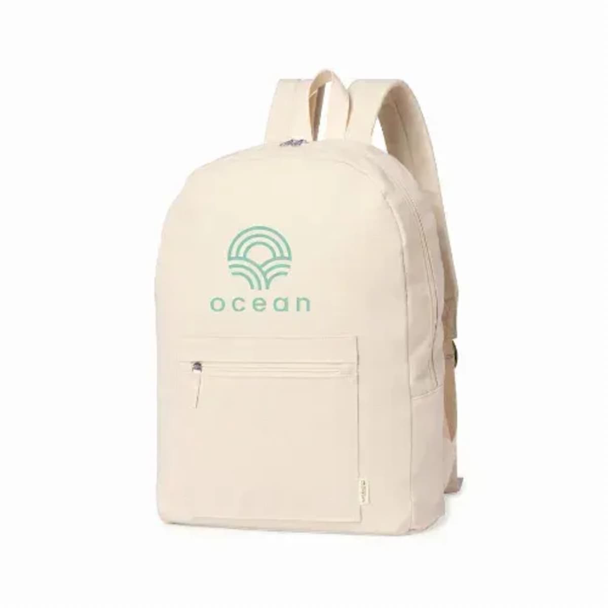 Main compartment with matching zip closure and double puller. Outside pocket with zip closure, with padded back and shoulder straps. With the organic cotton distinctive on the outside label and explanatory card in kraft cardboard.