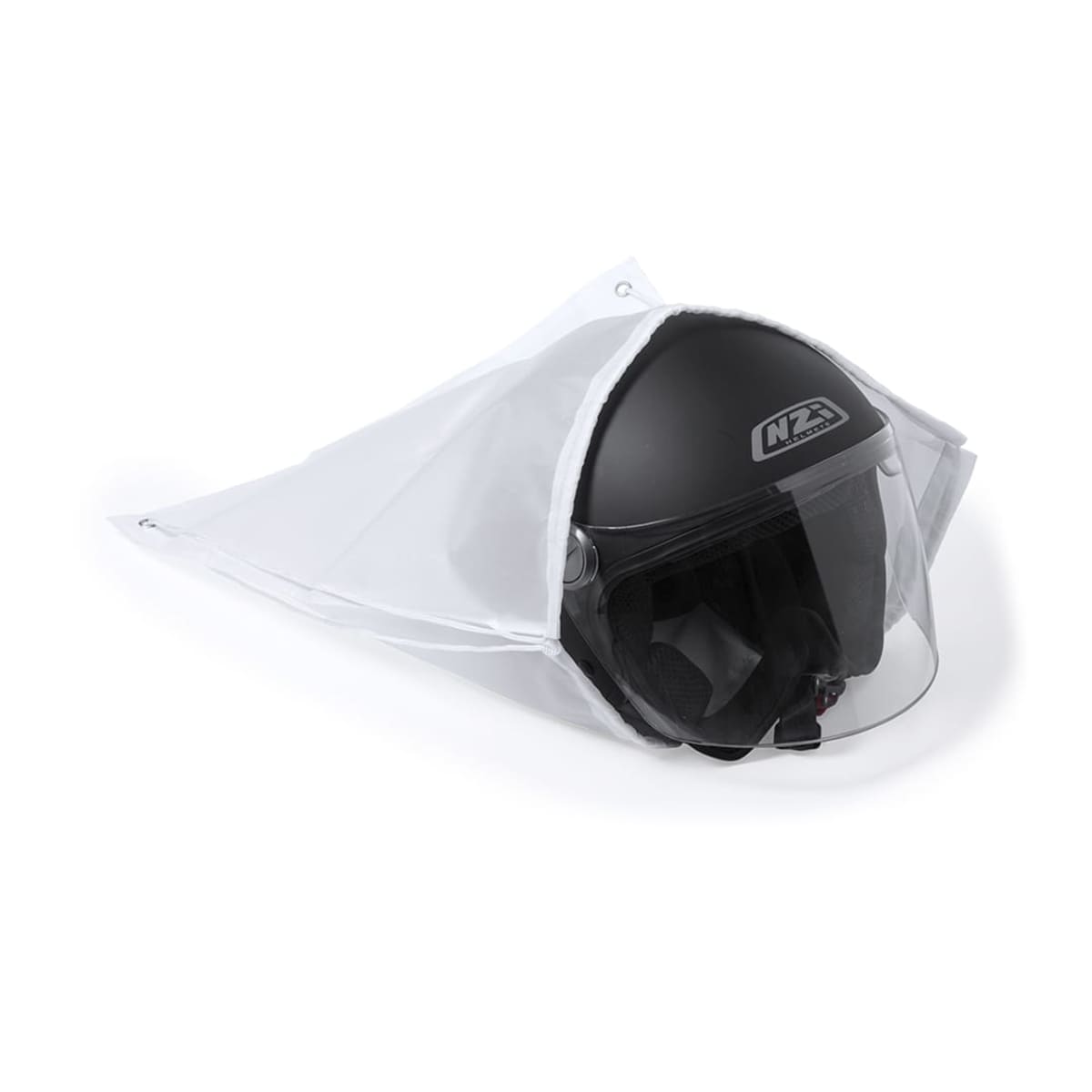 210D soft polyester especially designed for motorcycle helmets Black self closing strings Corners with metal eyelets PU leather reinforcement in matching color