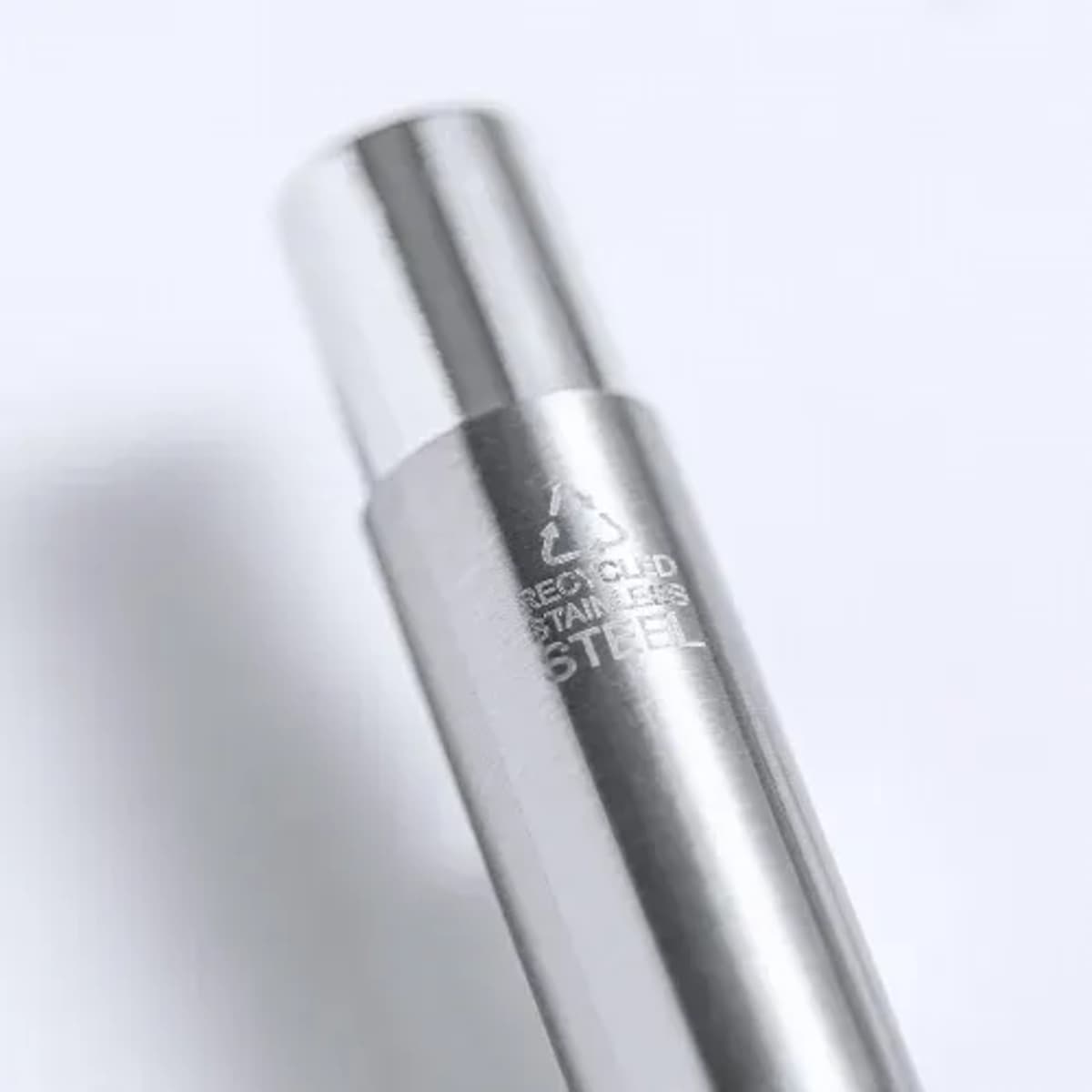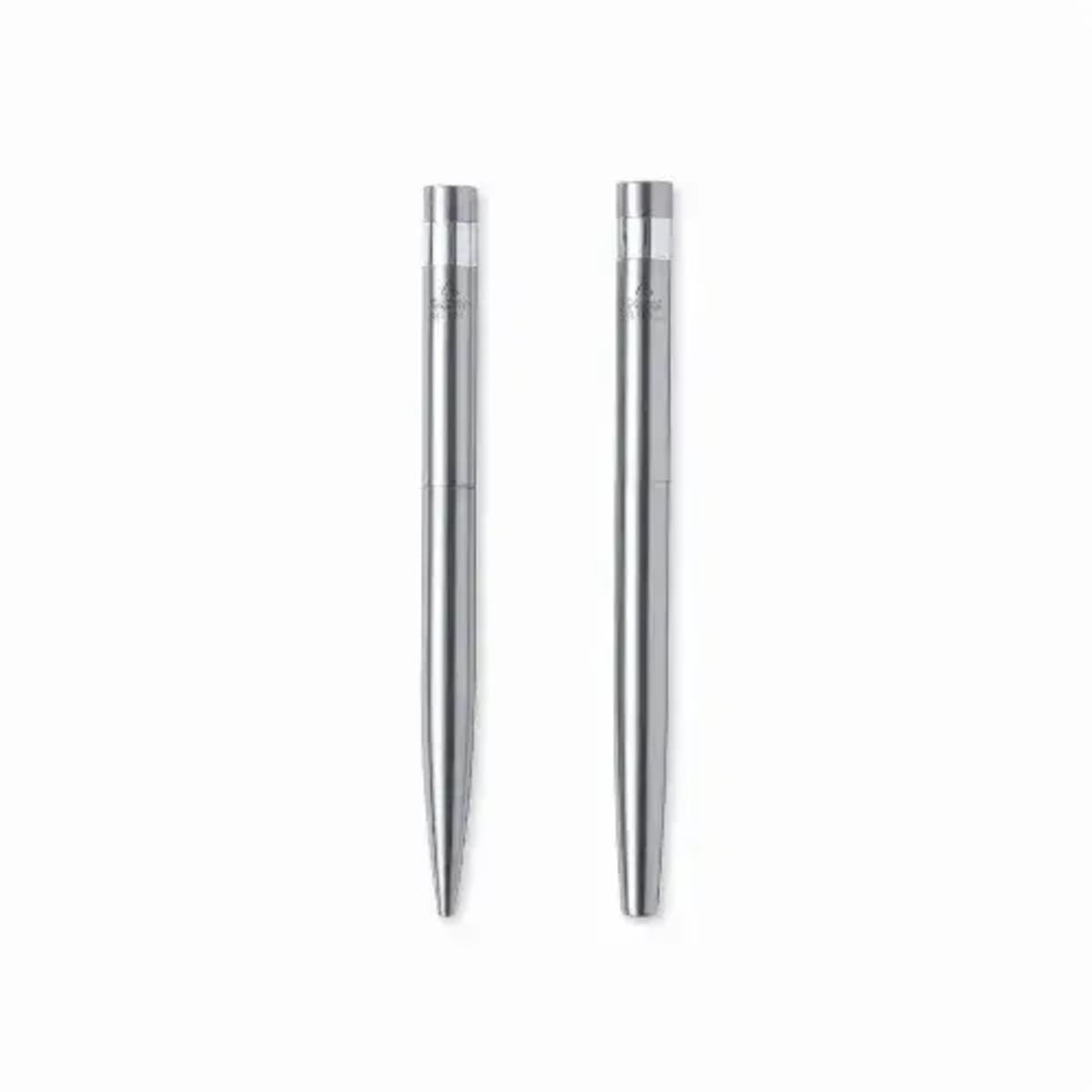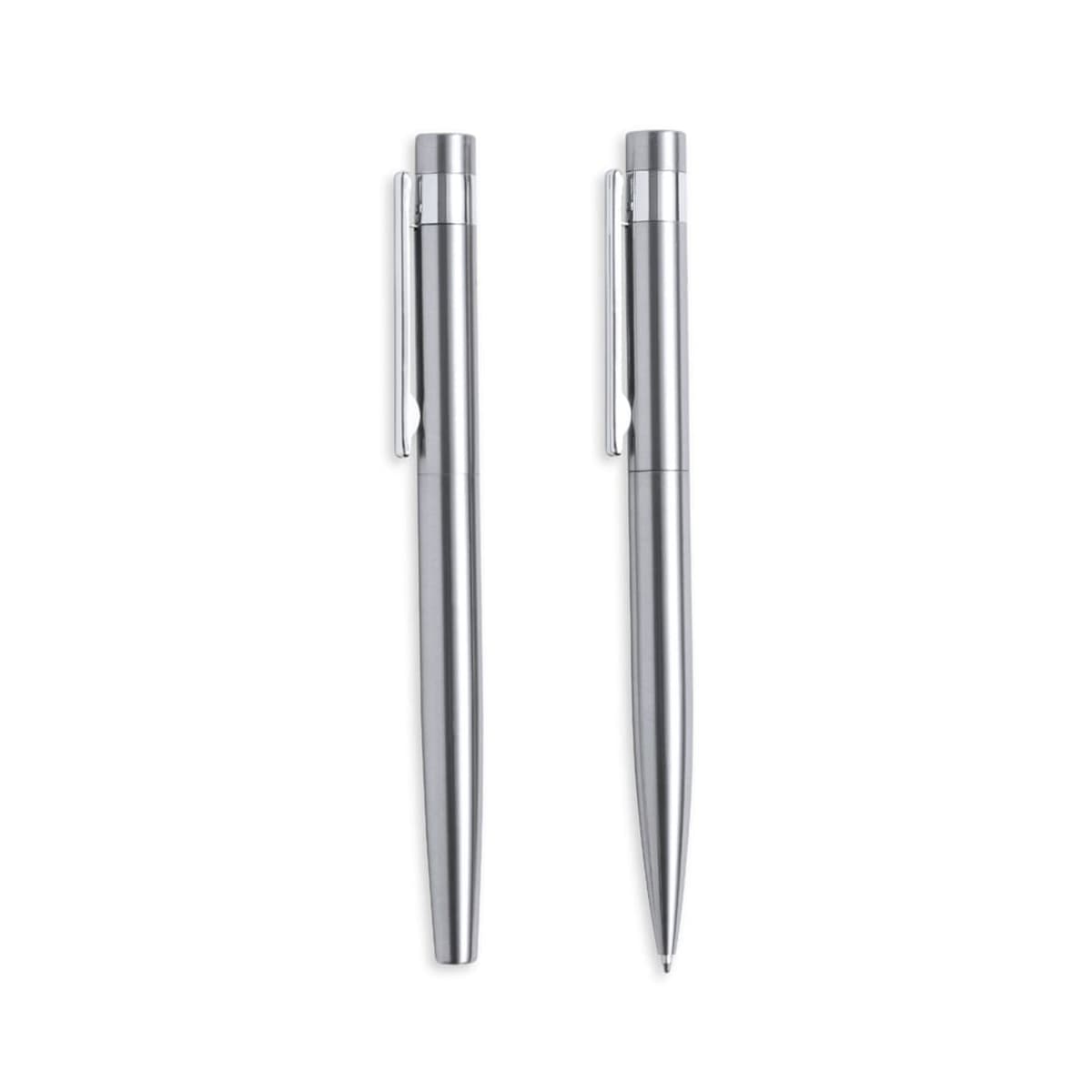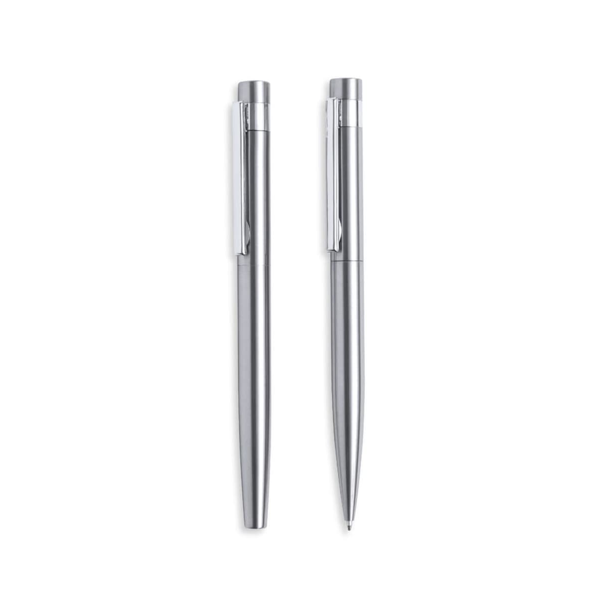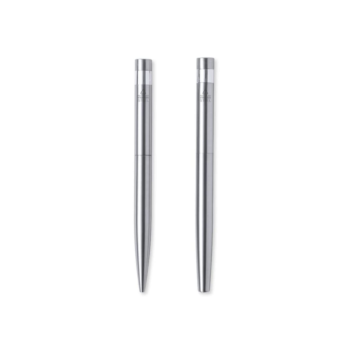 Eco-friendly set of ball pen and roller pen, made in recycled stainless steel.