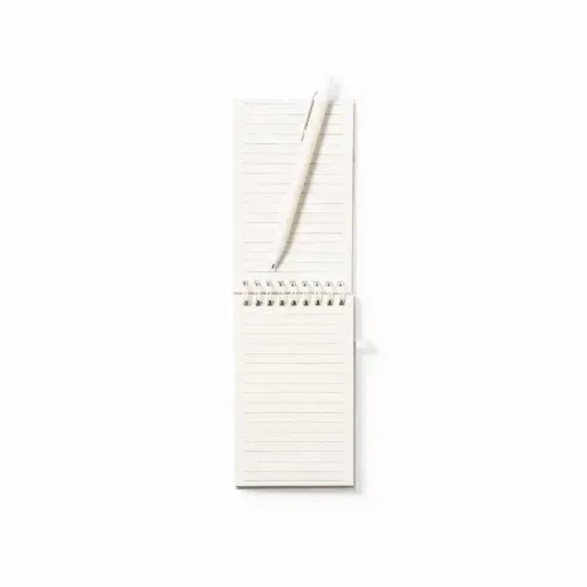Features:  Hard cover with bamboo detail on the front cover and matching elastic band, including pen holder. Inside with 80 sheets of single-stripe layout and the distinctive of recycled milk cartons on back cover.Including ball pen made from recycled milk cart