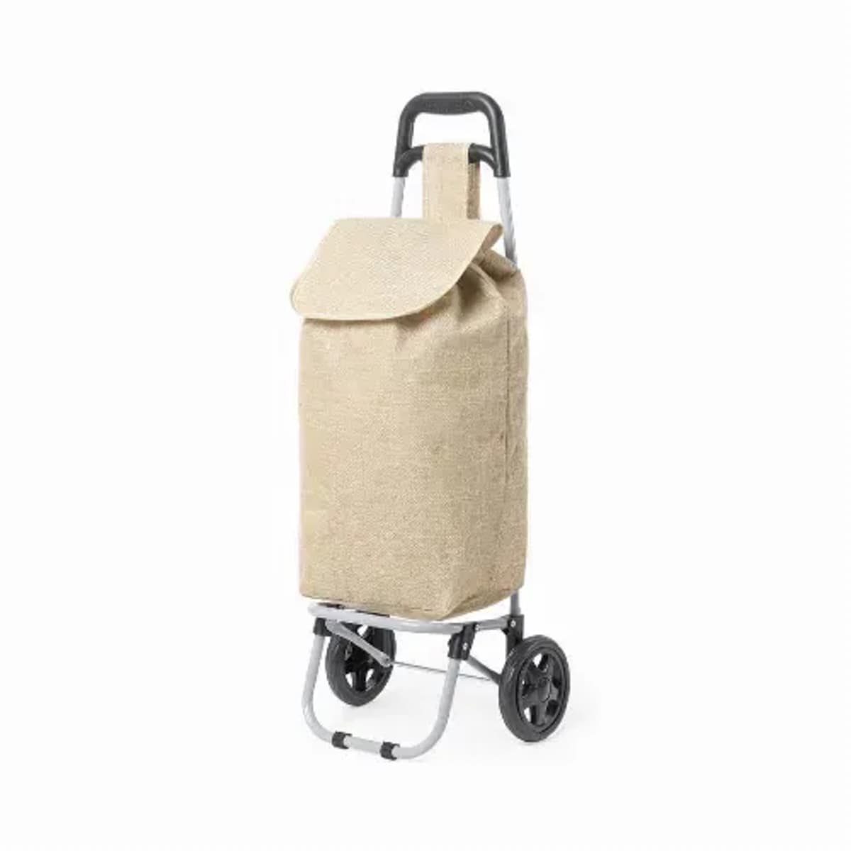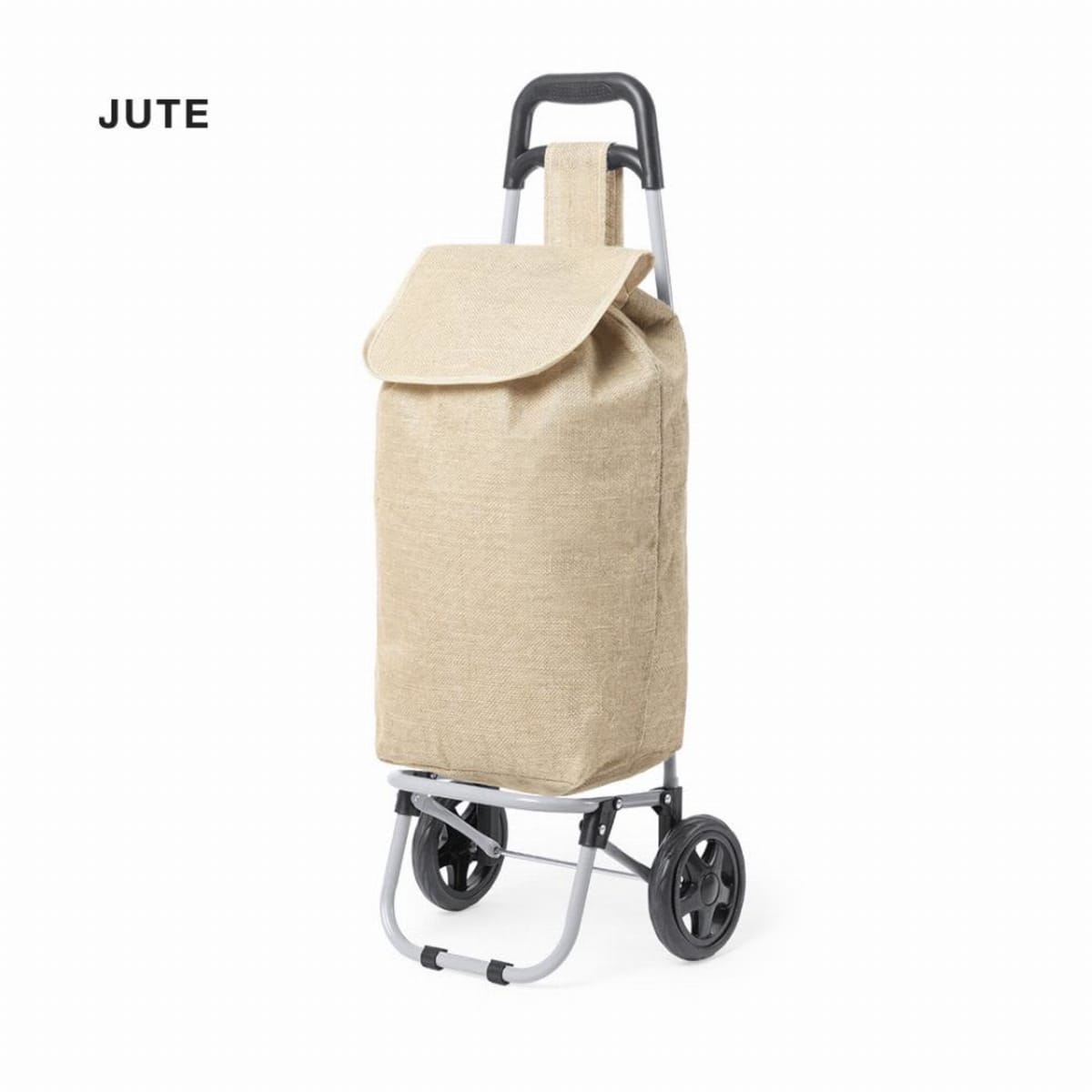 Made of resistant jute, encouraging the use of natural materials and thus helping the sustainability of the planet. With reinforced handle, tubular metal body, rear zip pocket and rubber protection pads. High quality, reinforced wheels.