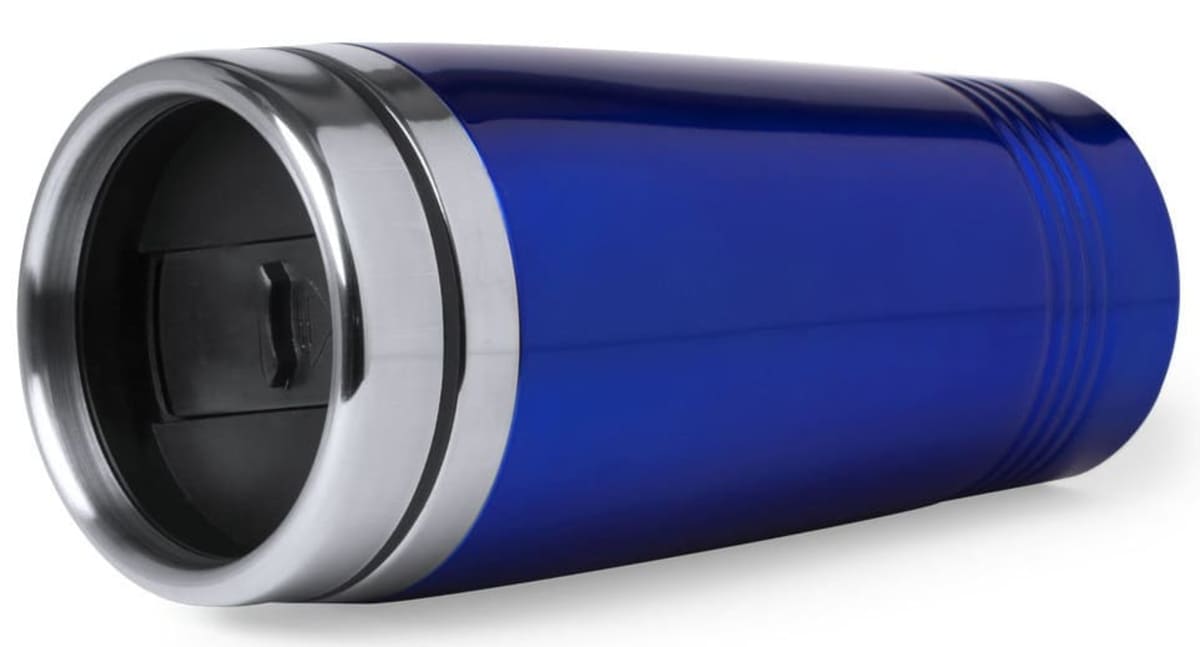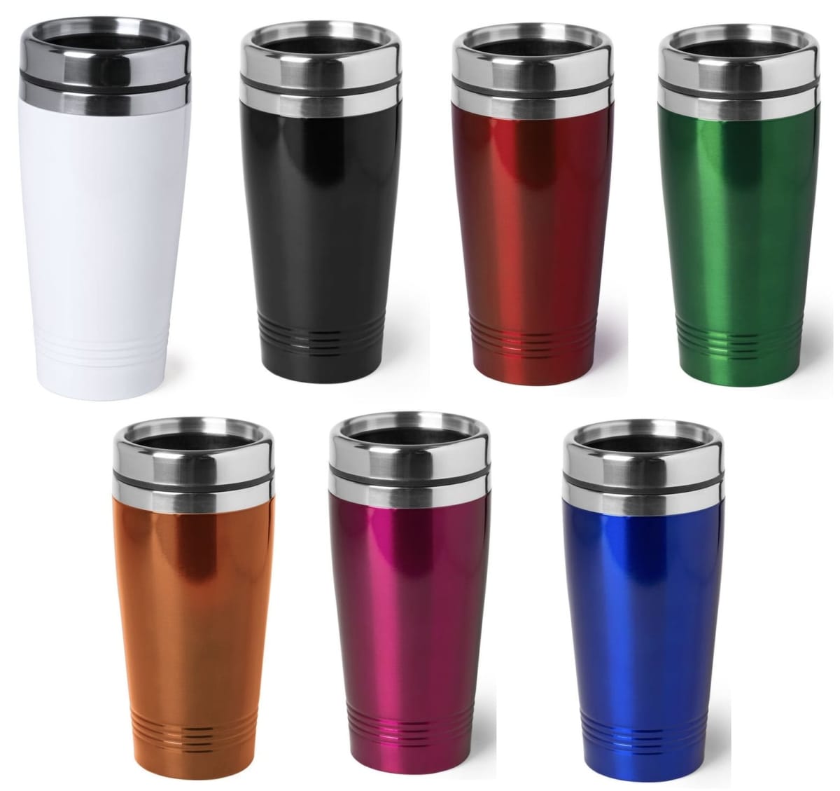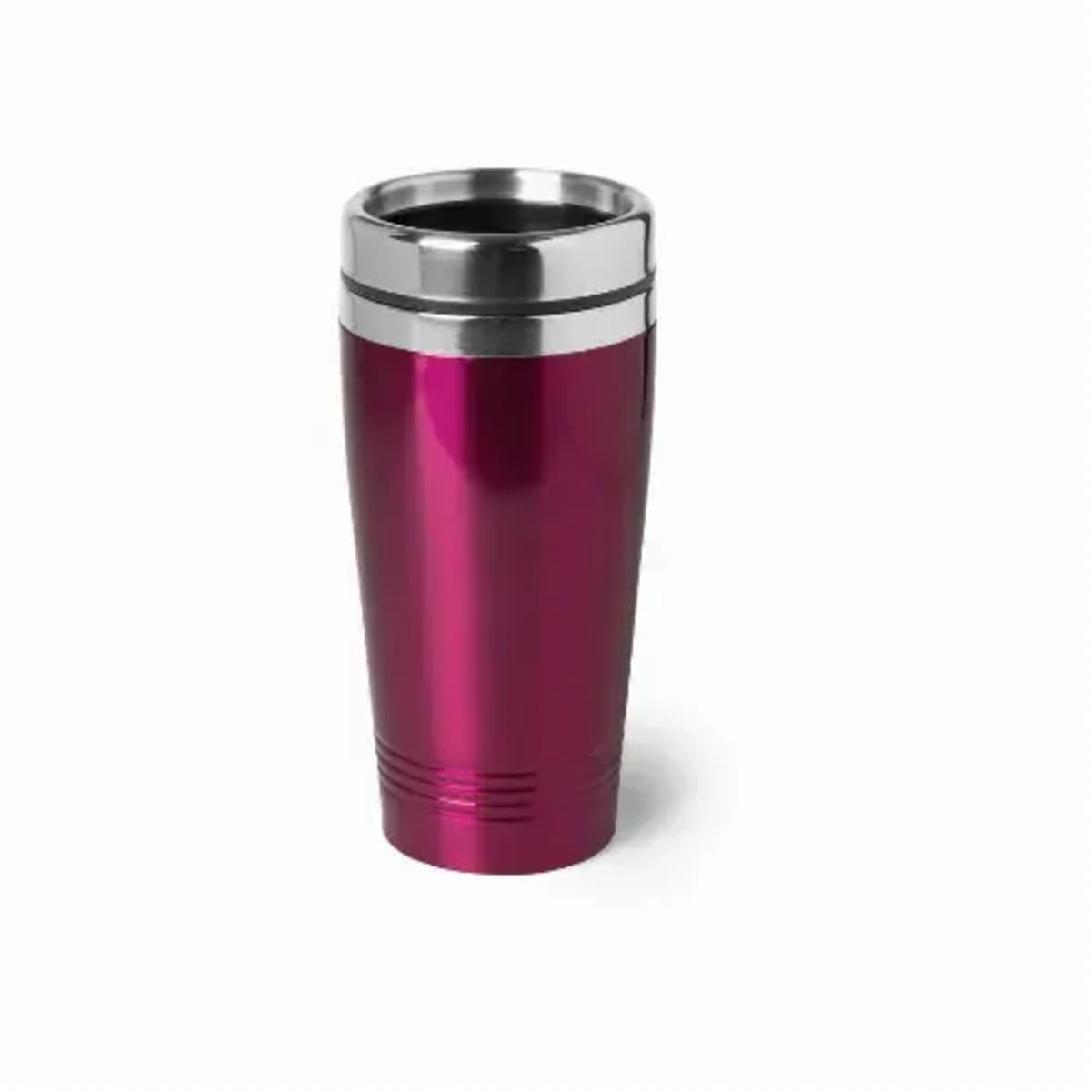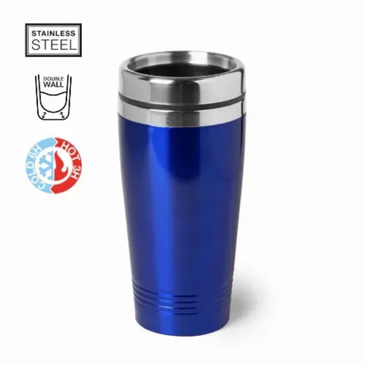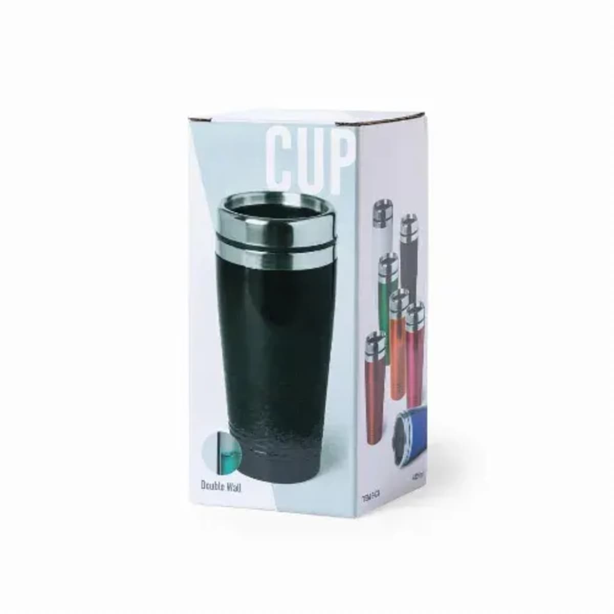 450ml capacity stainless steel cup. \\ Double wall for a better and longer preservation of liquid’s temperature. Security lid and soft foam padded base. Available in a wide range of metallic colours Presented in an attractive design box.