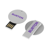 The round Burton clip flash drive is manufactured in 6 six colours of ABS plastic to contrast any branding. Clip this drive to business cards, papers and catalogues. Includes A Grade memory, a 10-year data retention warranty and a 2-year faulty manufacture replacement warranty. Material: ABS.