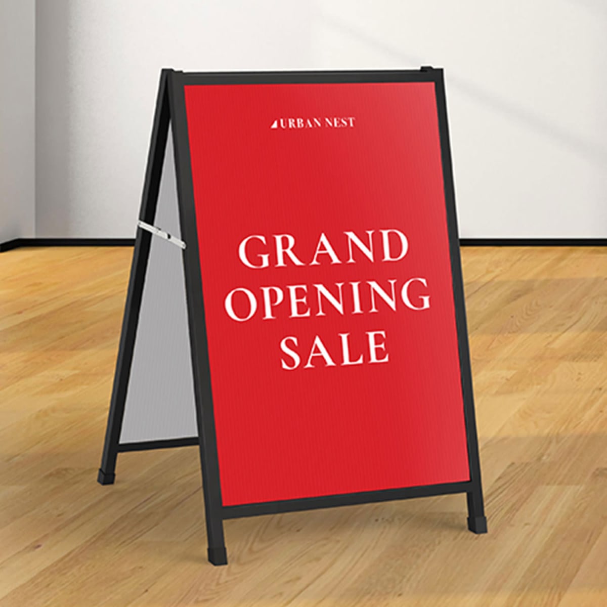 Draw attention to your event or business with an eye-catching steel A-frame sign. The high-quality A-frame measures 60cm x 90cm. This product is printed on both sides with full colour branding via a UV Vinyl print and has a lead time of 14 working days.
