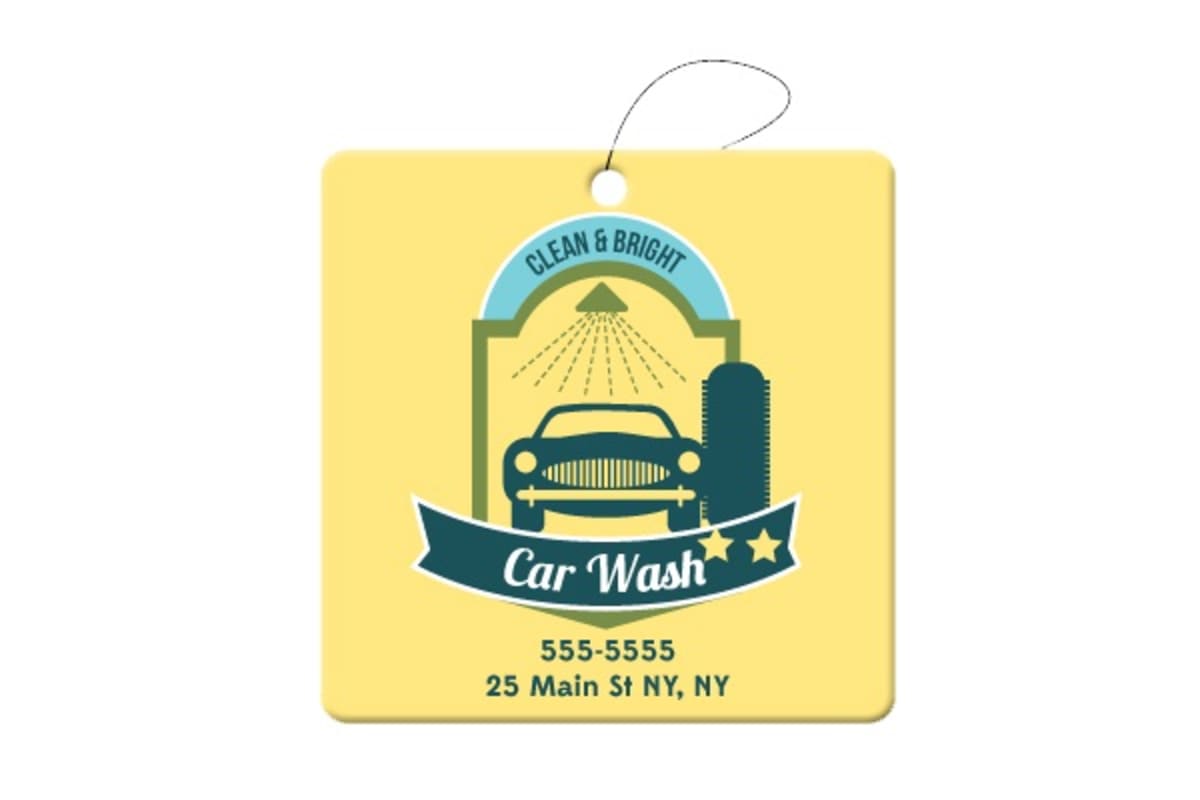Square shaped air freshener printed both sides full colour to maximise exposure for your corporate message or logo. All fresheners have 3g of good quality fragrance and there are 90 fragrances to choose from - Just ask us for a list once you have ordered. Each Air Freshener comes individually bagged. A printed card can be supplied with an extra charge. Free Artwork Set Up