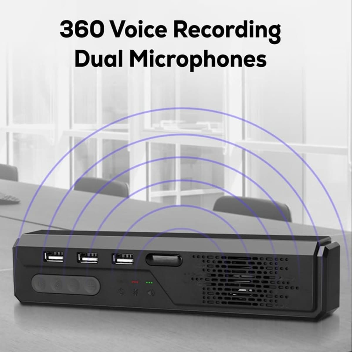 Operating Voltage: USB 5V, Microphone: -34dB, Speaker Size: 36 mm, Speaker Output: 4Ω 3W, USB Output: 3 x USB 2.0 ports, Audio Output: 1 x 3.5 mm Stereo port.