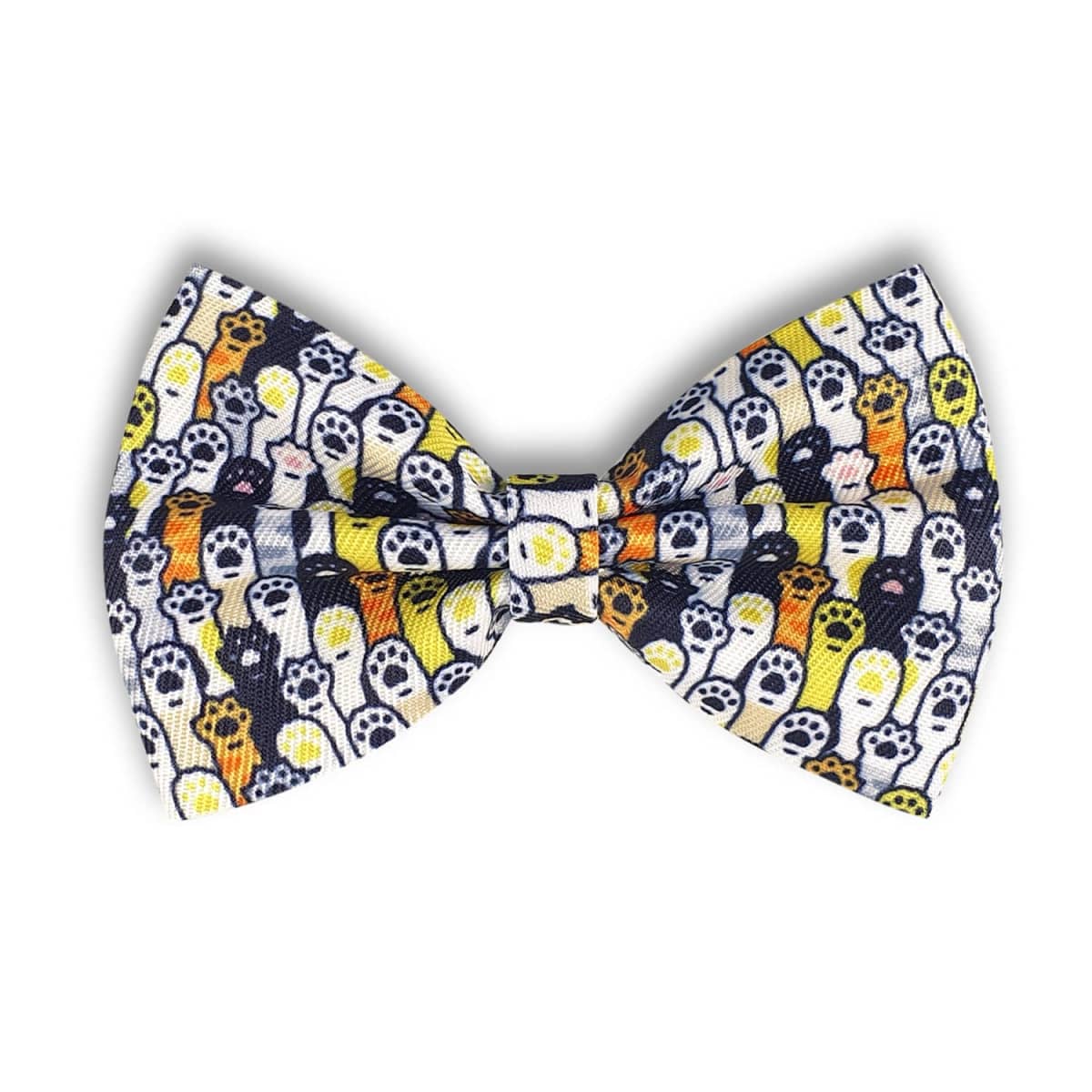 Smart bow tie accessory for pet collars made from polyester with vibrant sublimation branding. The bow tie features two elastic loops for easy attachment to collars and has a lead time of 35 working days.