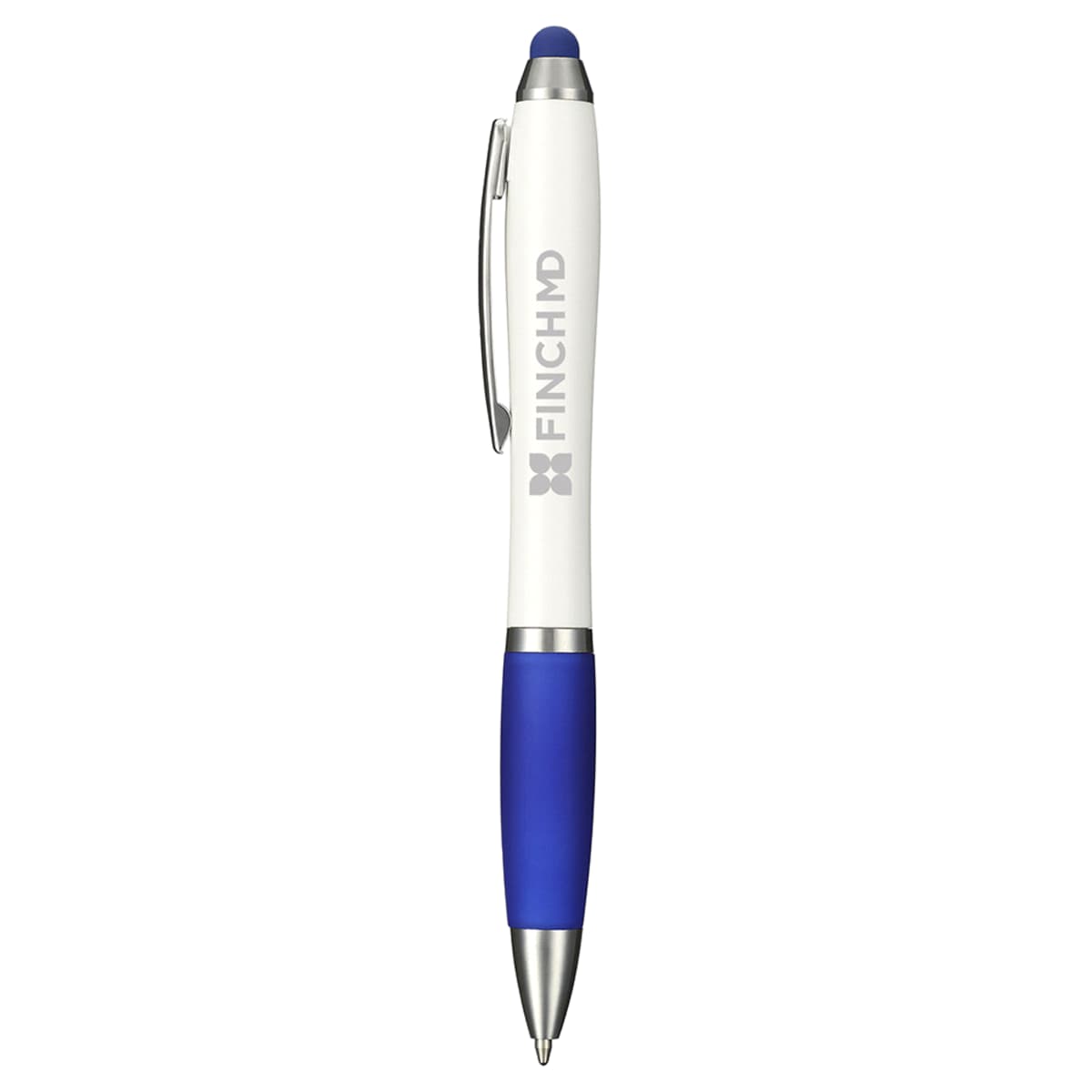Anti-bacterial ballpoint pen and stylus with twist action mechanism. This pen has a silver nano powder additive, which reduces the growth of micro-organisms on the surface of the pen.