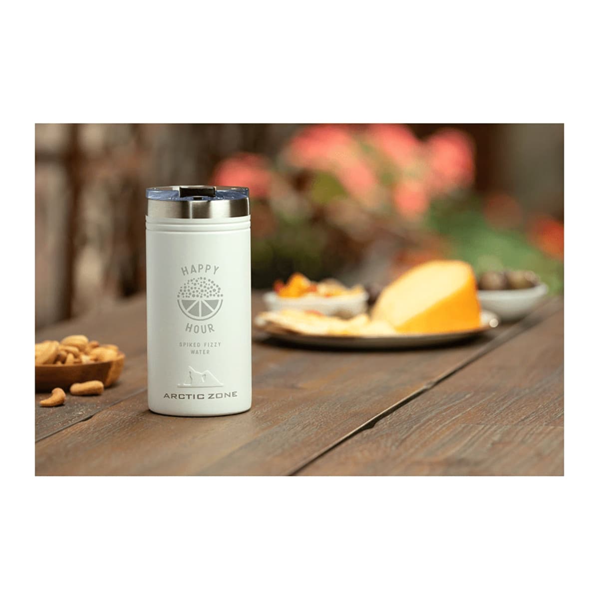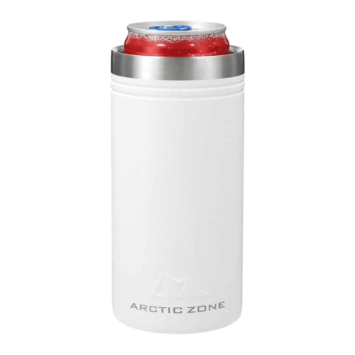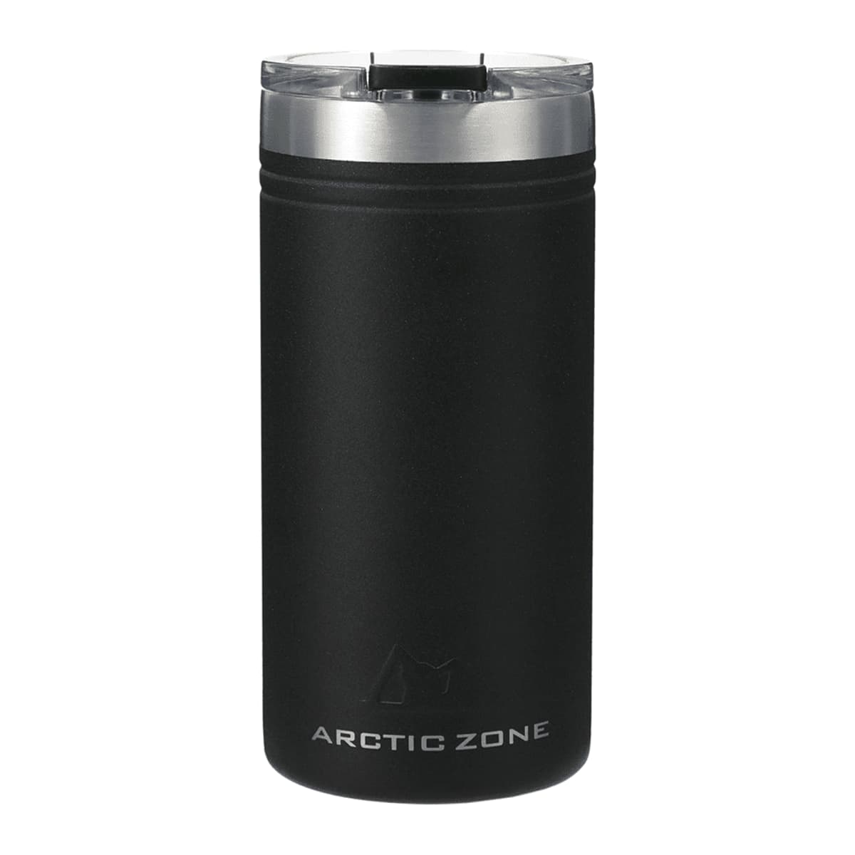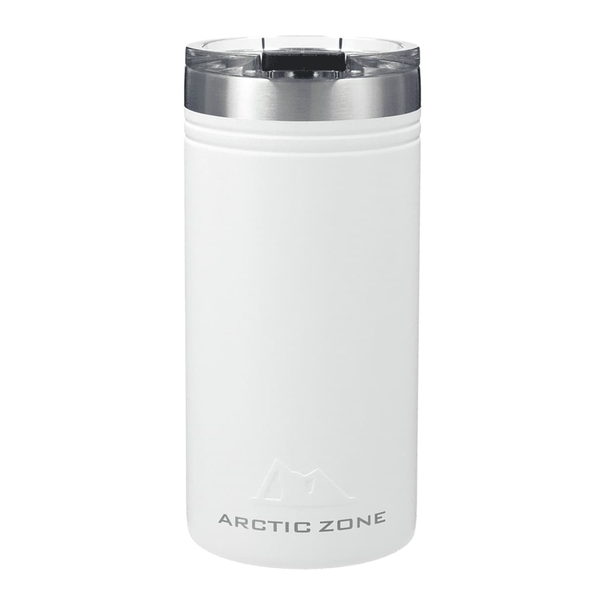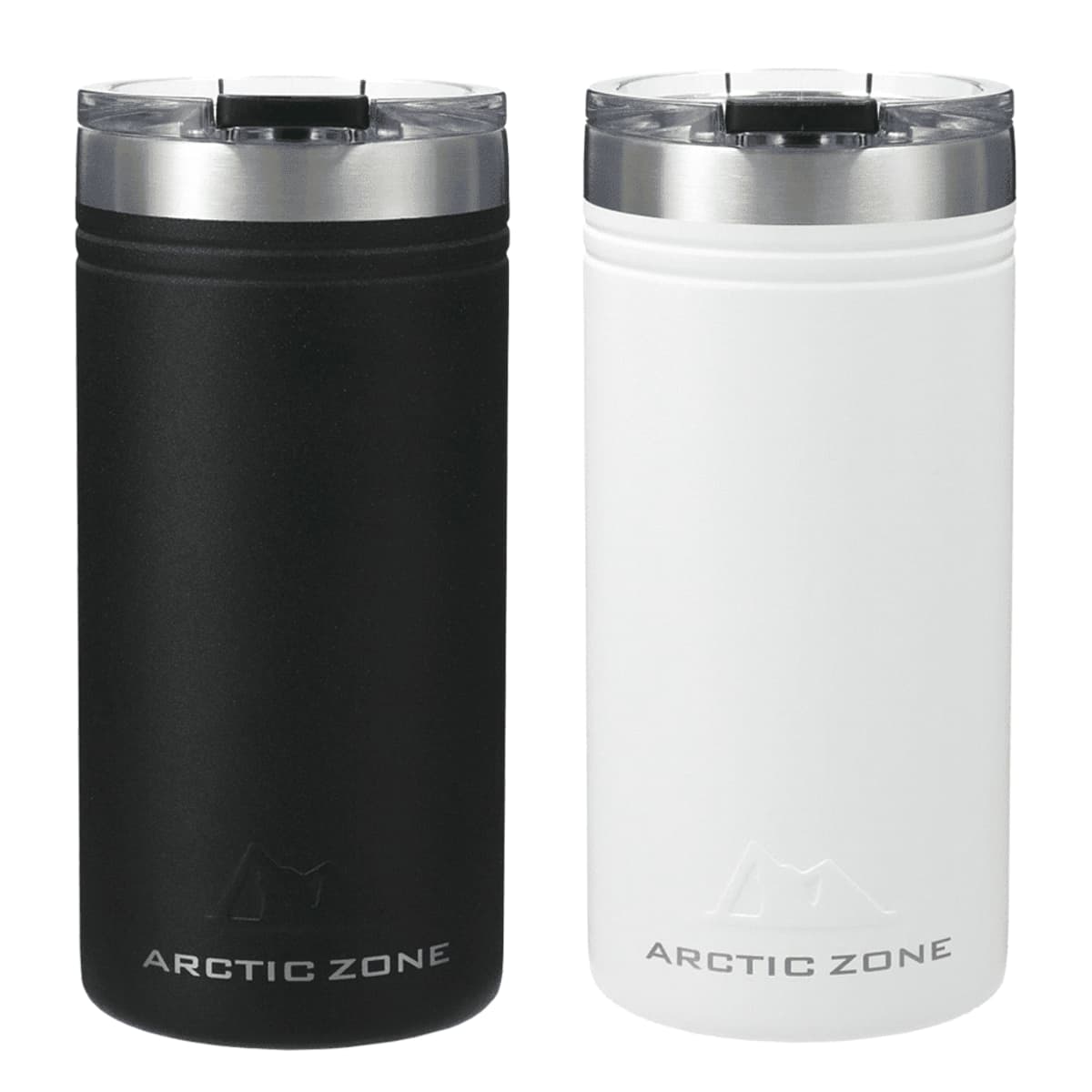 Use this dual-purpose thermal cooler to hold slim cans, or drink straight from the easy push-on lid with slide closure! Either way, the sturdy double-wall construction with copper vacuum insulation will keep your beverage cold for 24 hours or hot for 8 hours. The Arctic Zone Titan Thermal HP Slim Cooler 350ml is perfect for rotary printing and features a condensation-resistant exterior and wide opening for comfortable pouring.