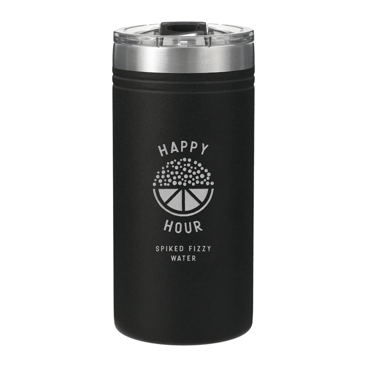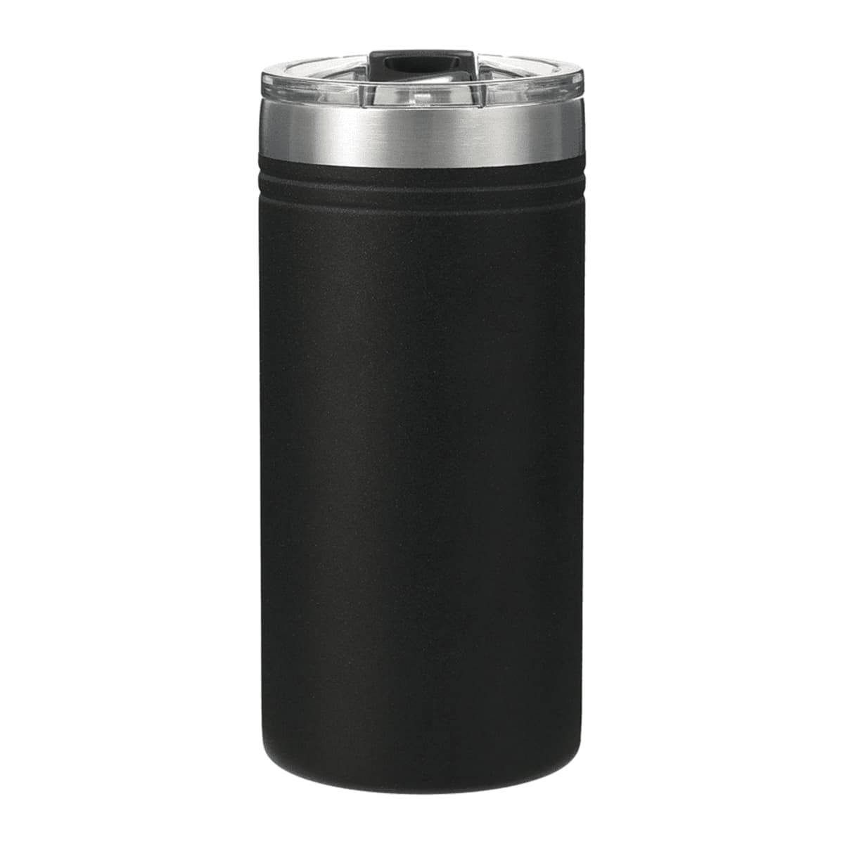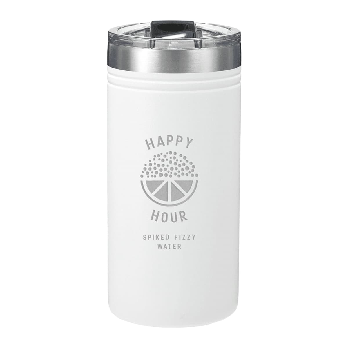 Works as a tumbler or drink insulator for slim cans, Stainless steel with copper vacuum insulation, Durable powder coating is scratch- and fade-resistant, Condensation-resistant, Sleek, slim design, Push-on, slide-closure lid, Laser engraving availab