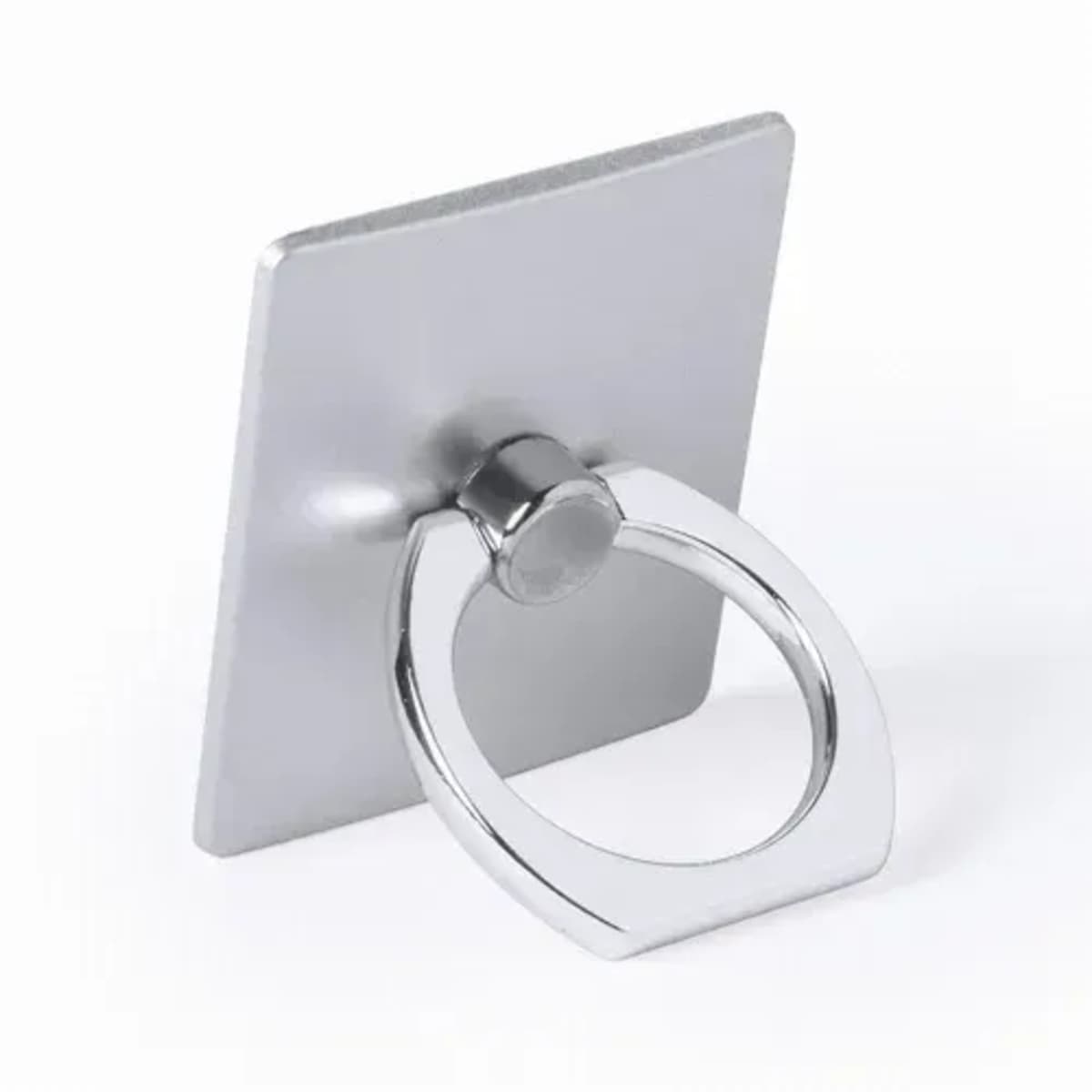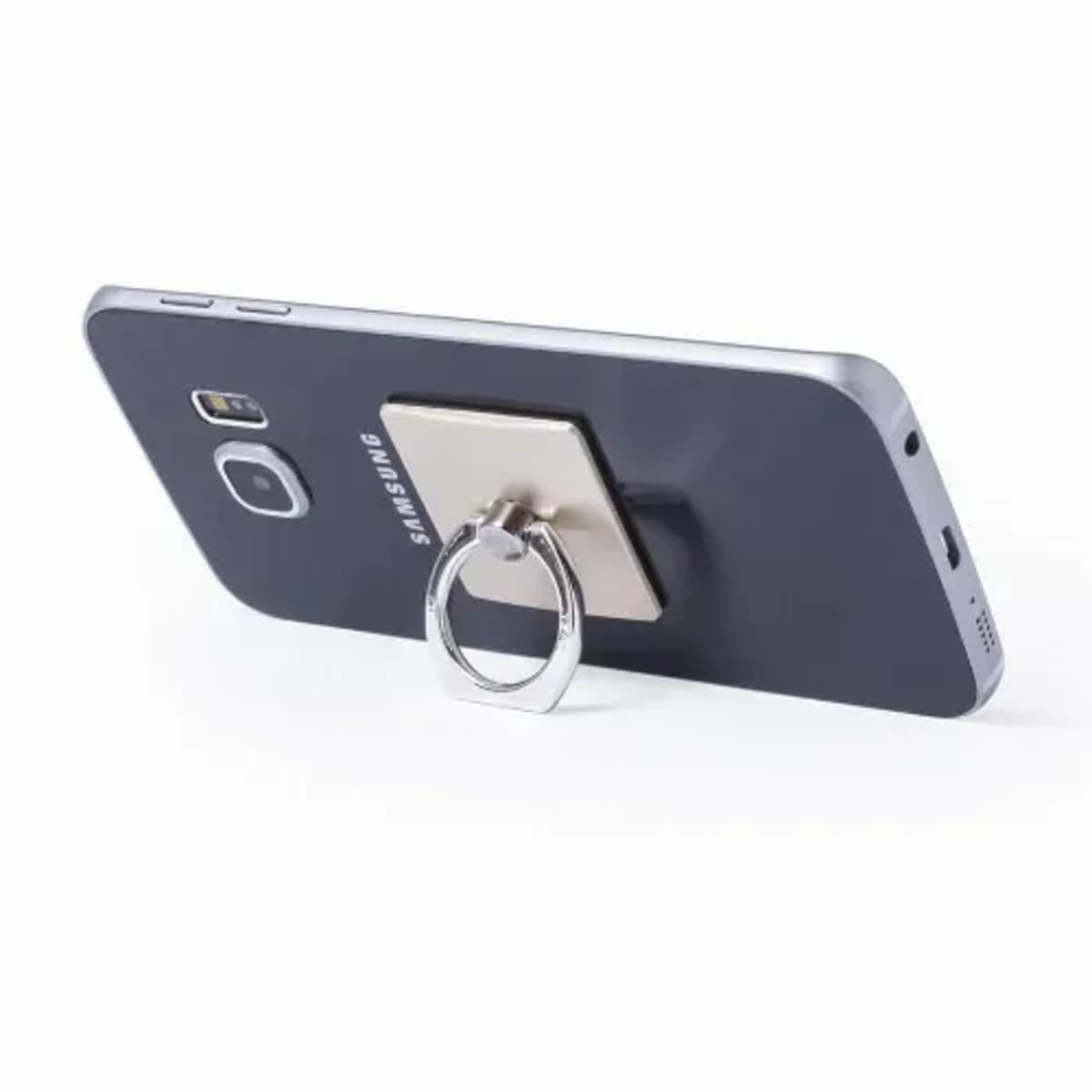 Sticky holder for smartphone with minimalist design and elegant silver and golden finish.