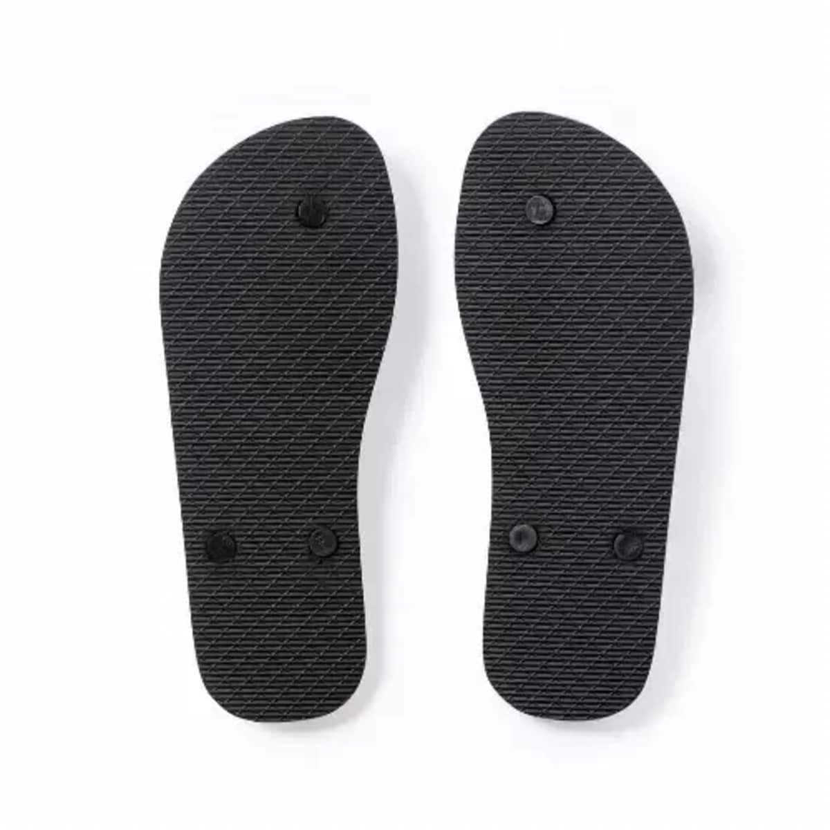With resistant EVA sole, black PVC straps and available in two sizes: 36-38 and 42-44. Set including die-cut EVA panel for customization.