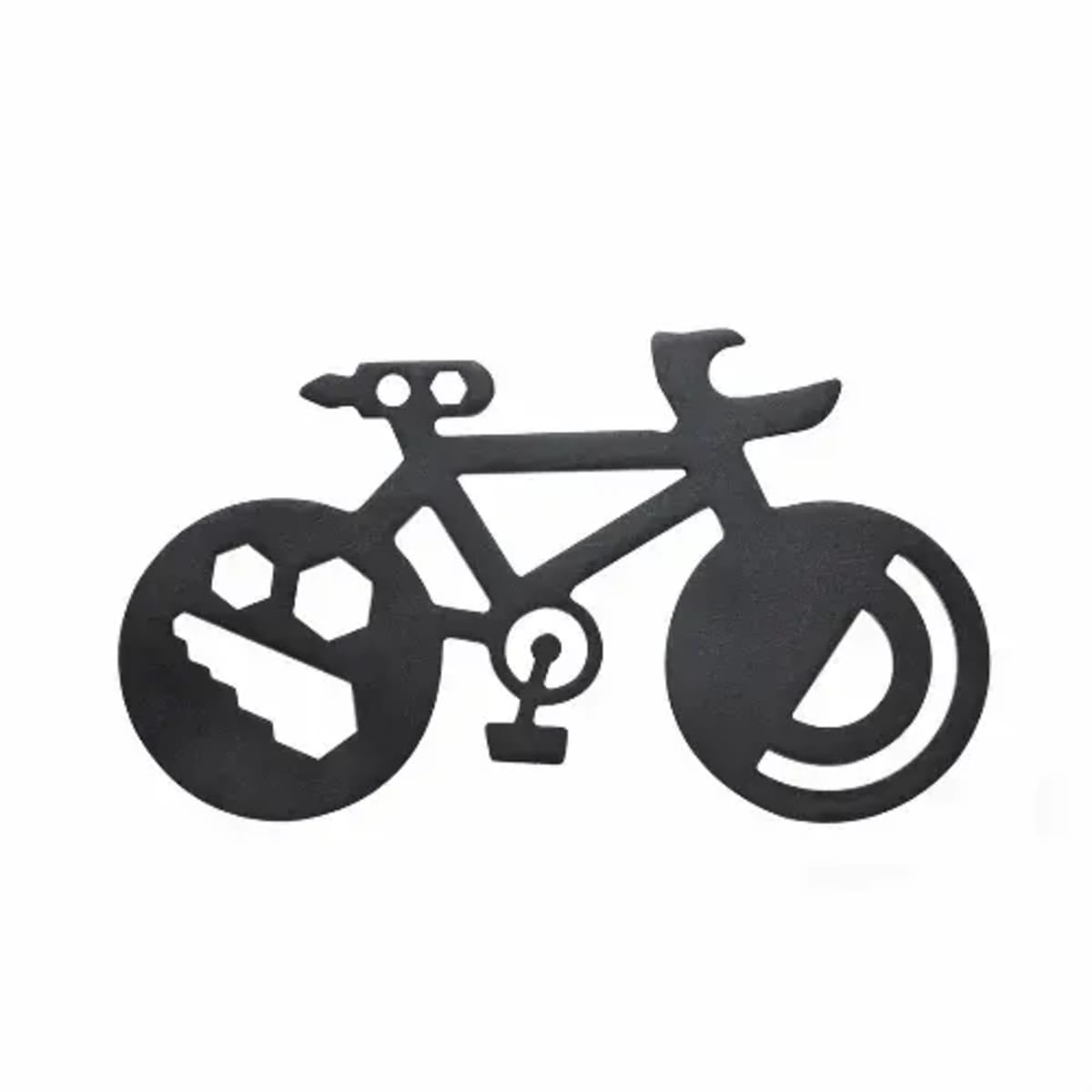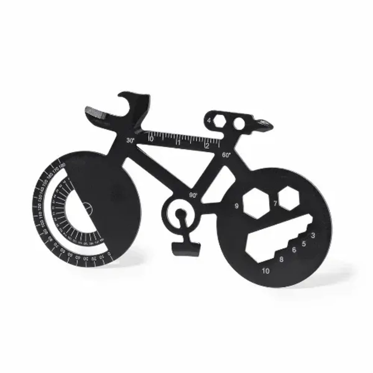 Handy and useful multi-tool in stainless steel, bicycle shaped.
