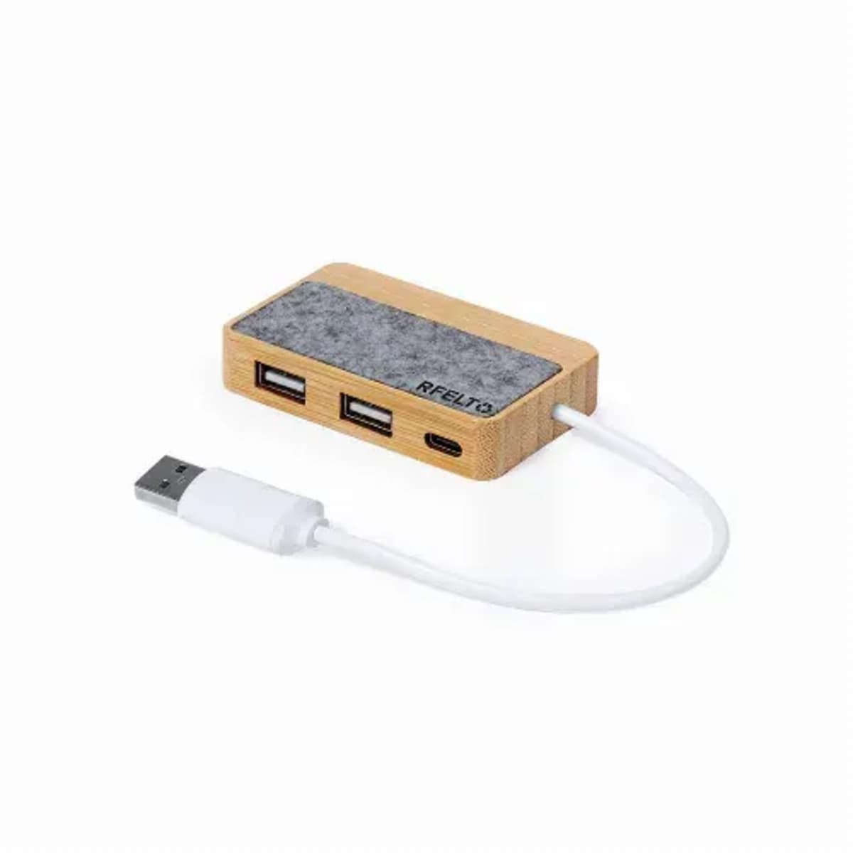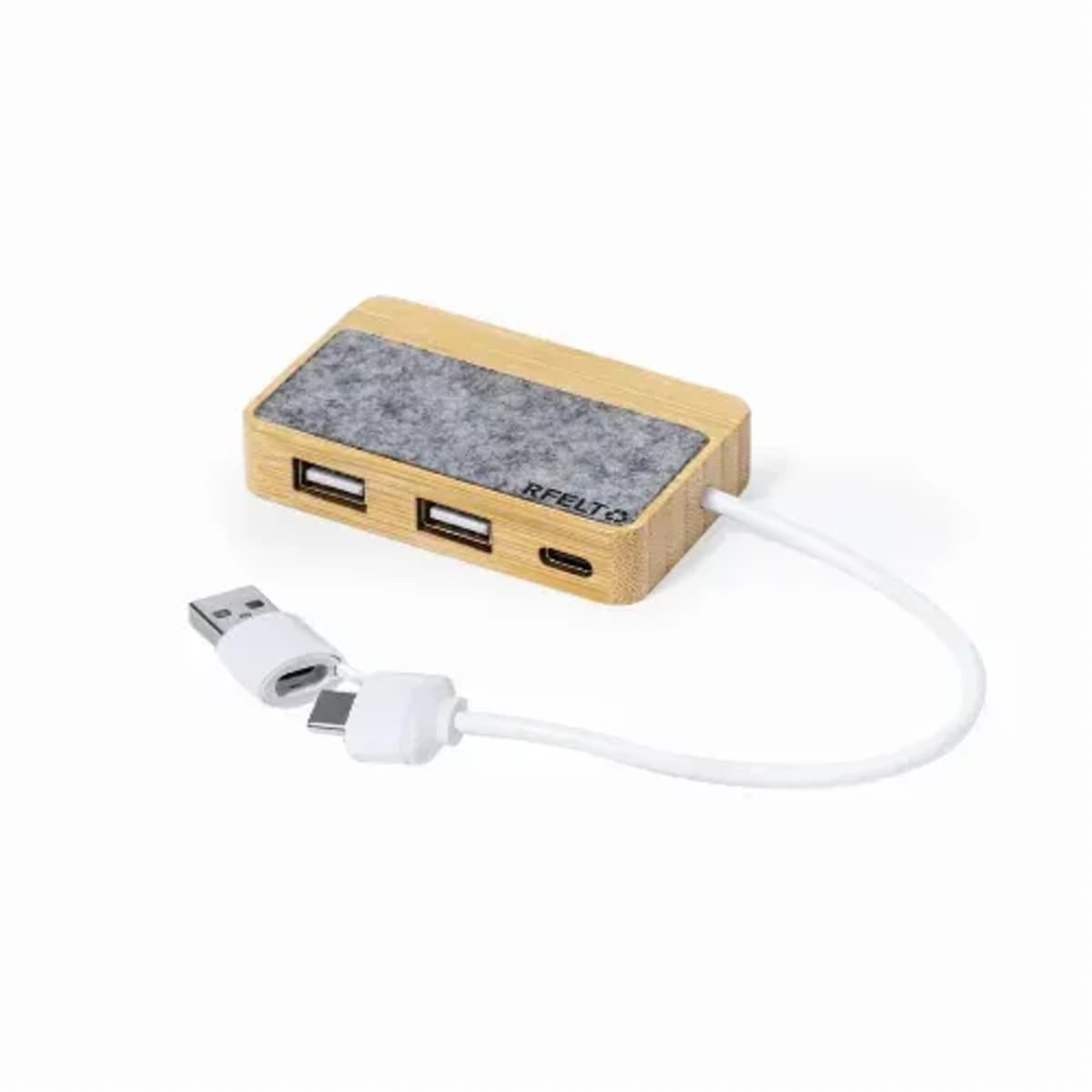 USB 2.0 port made of bamboo and RPET felt.Including Type-C port and 2 USB ports, with dual USB/Type-C input.
