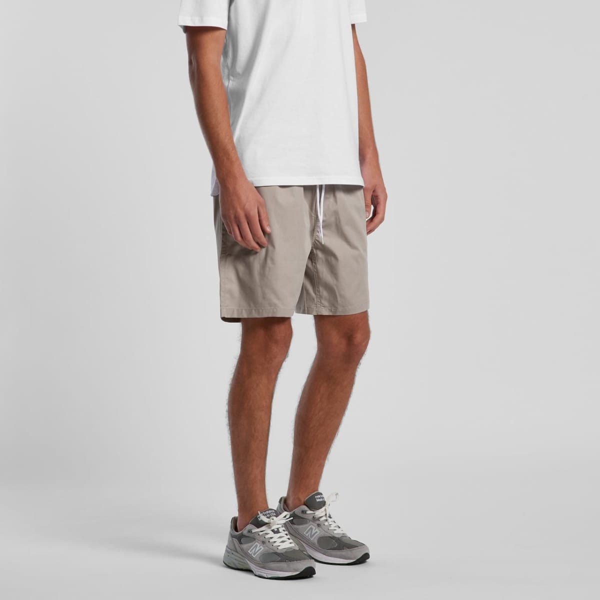 Casual shorts, 2 side and 2 back mesh lined pockets, shorter length, elastic waistband, internal drawcord, preshrunk to minimise shrinkage