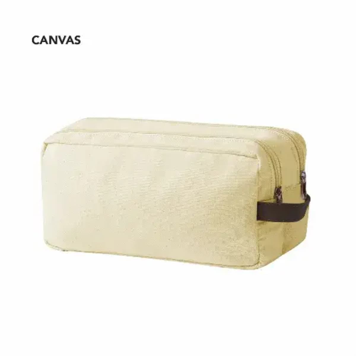 Double compartment beauty bag made of resistant canvas.