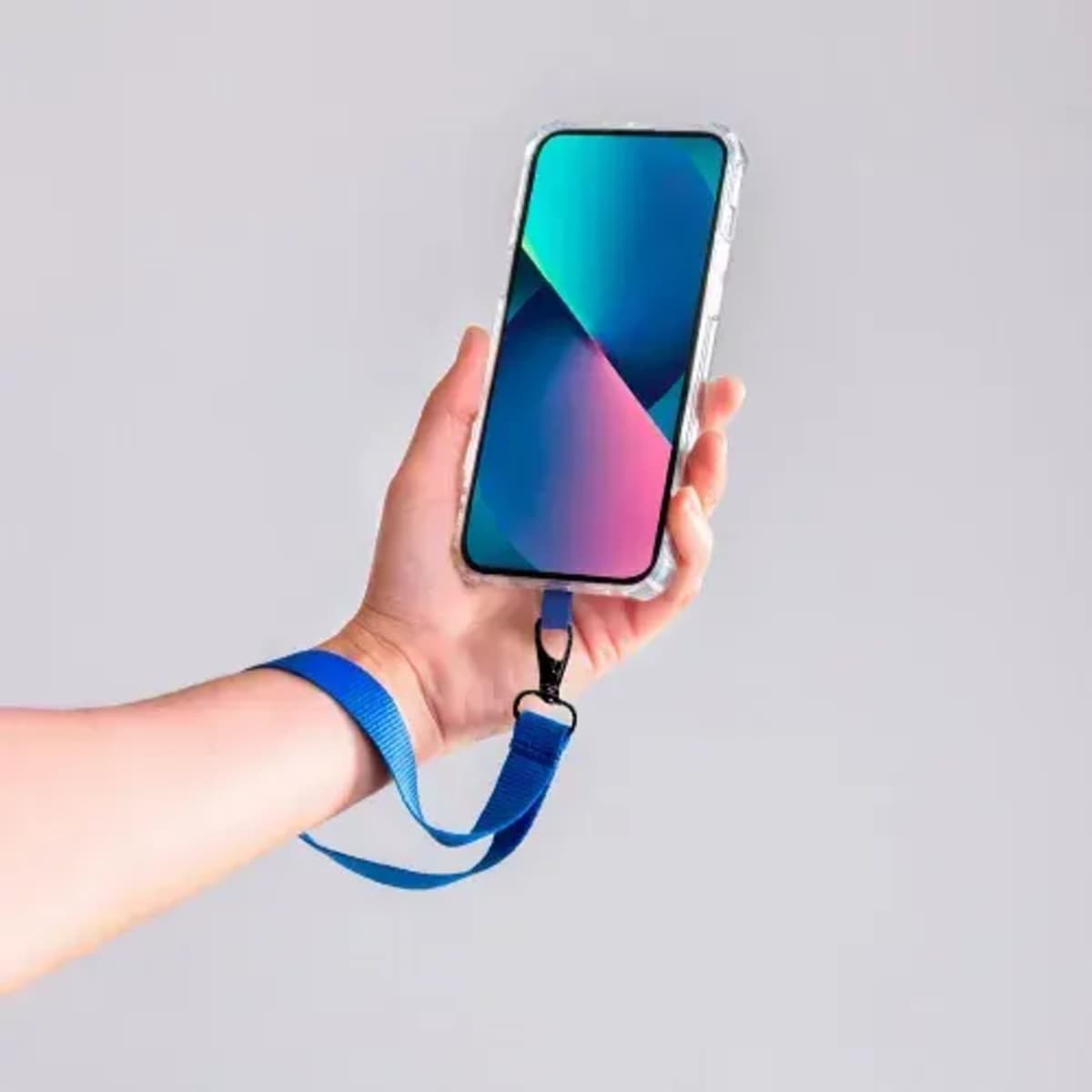 Original bracelet with holder in soft polyester, suitable for all wrists and with carrying accessory to place between the case and the smartphone.