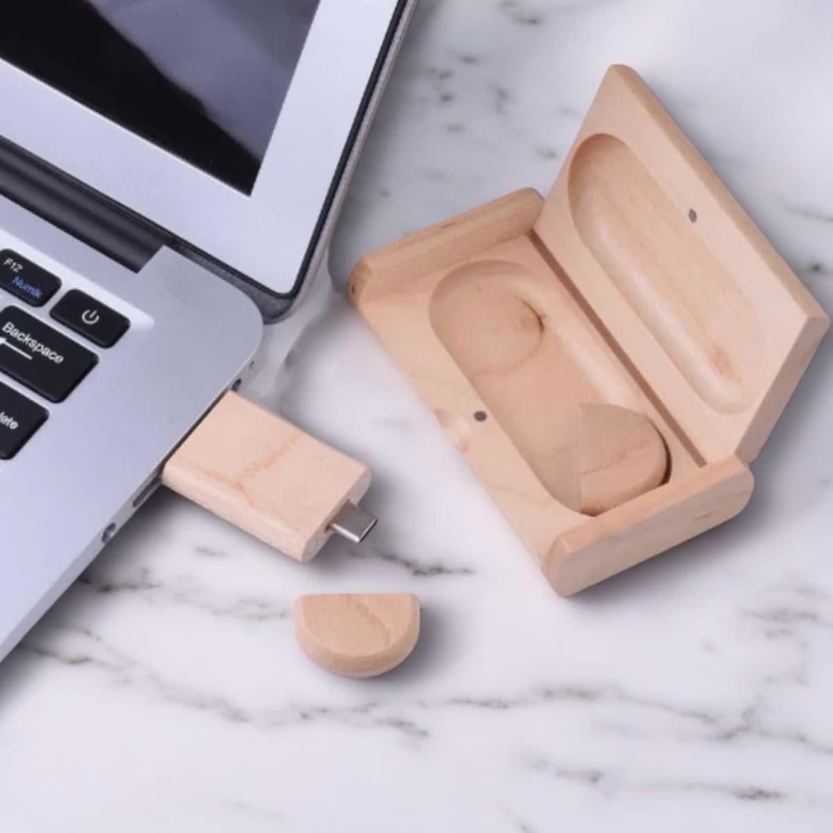 Experience the convenience and efficiency of the Wooden Dual USB with Type-C, designed for those seeking a compact and efficient solution for their data storage and transfer needs.