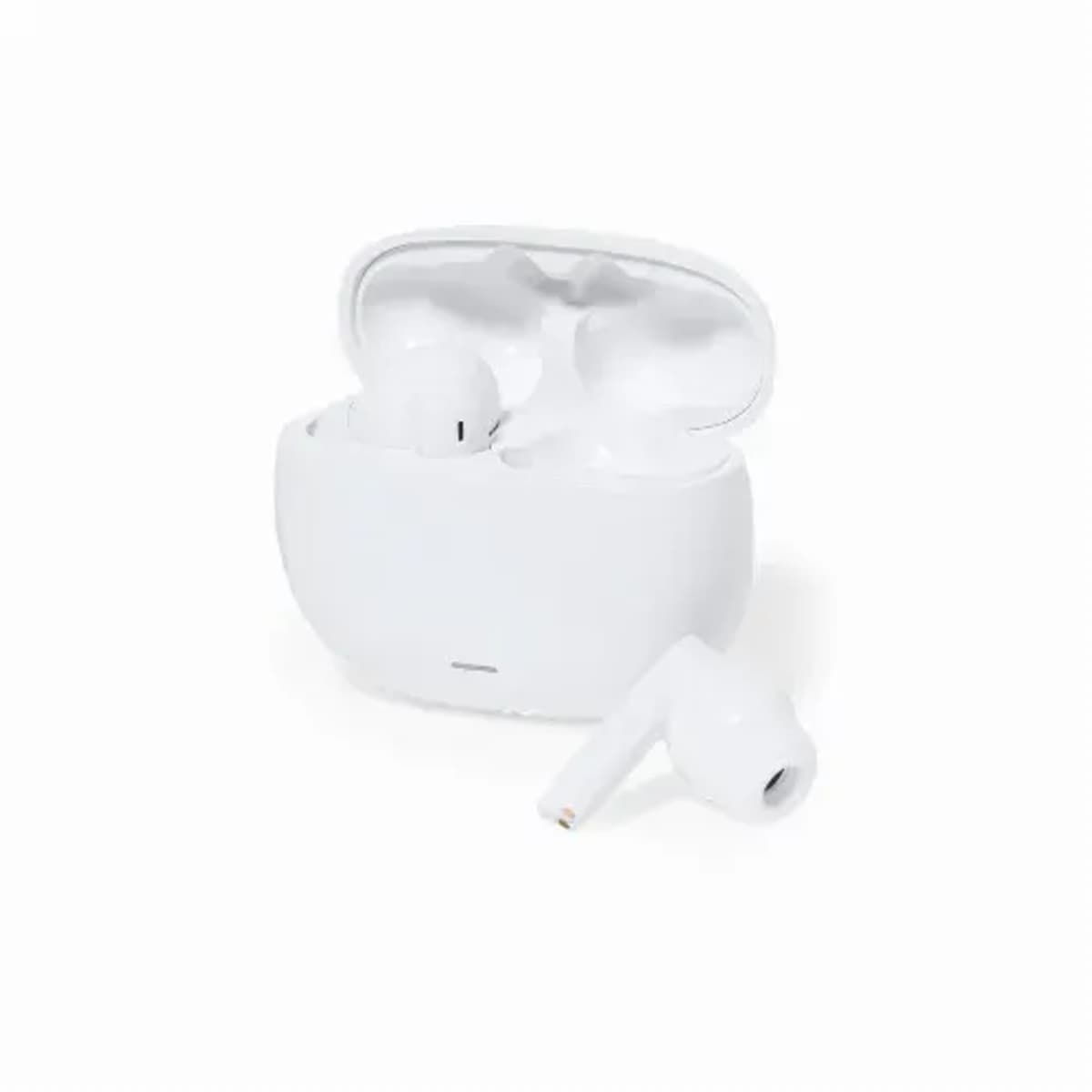Elegant white finish and Bluetooth connection. Ergonomically designed, featuring a touch control button integrated in the earphone, with matching charging base and charging status indicators. Hands-free function and USB rechargeable (cable included).
