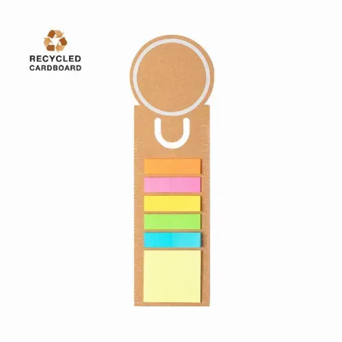 Made of recycled cardboard, with a wide printing area. Including 15 adhesive notes medium size and 75 mini adhesive notes