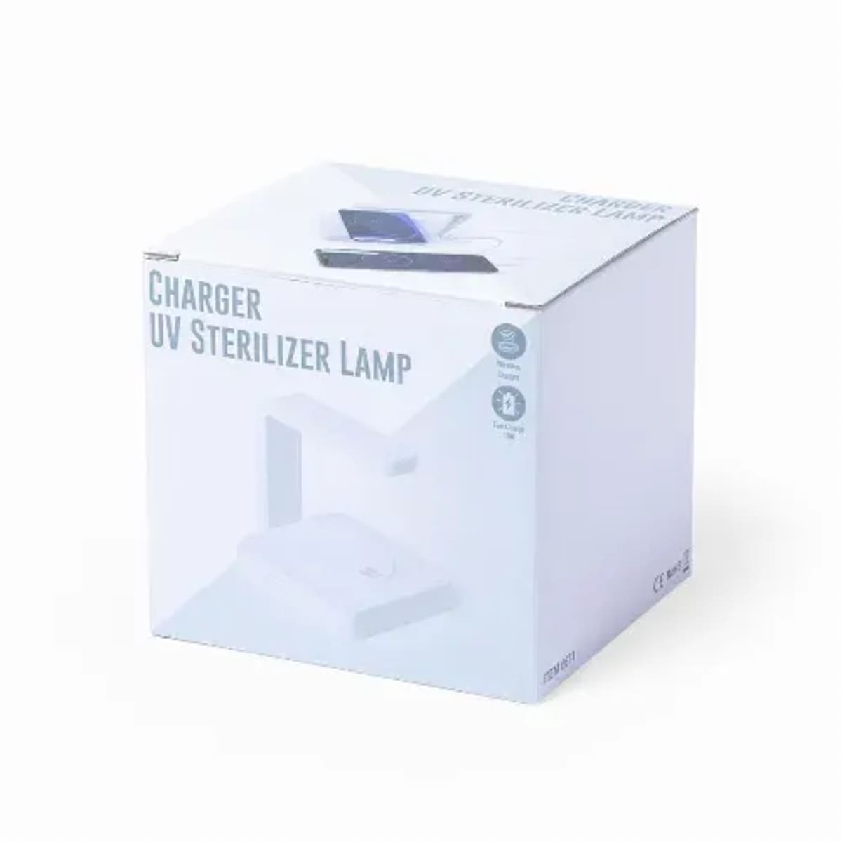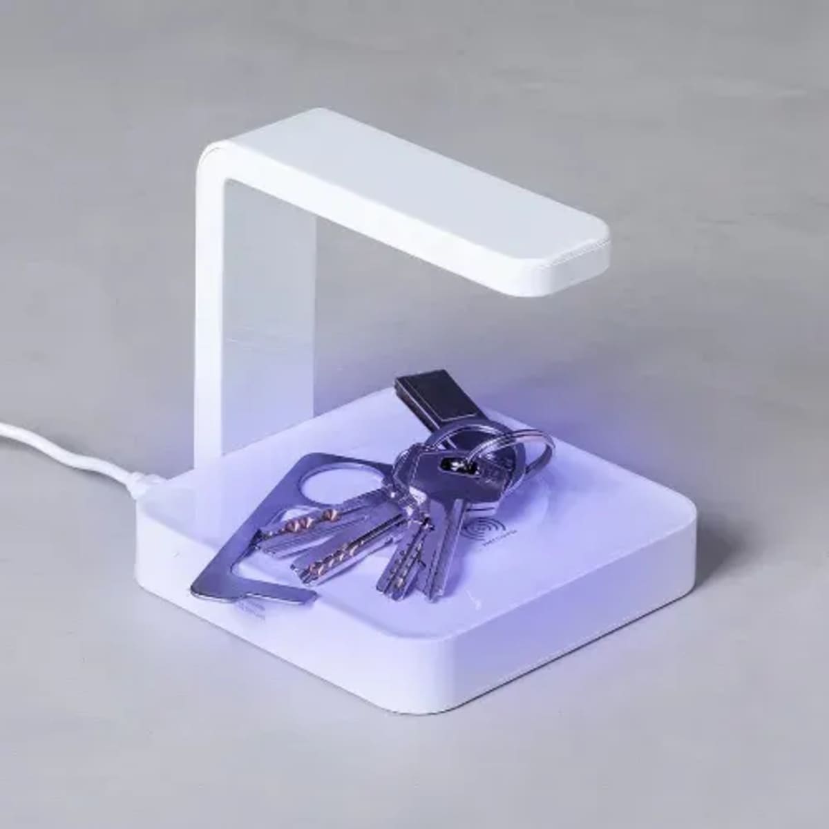 Ultraviolet light sterilizer lamp type C with integrated wireless smartphone charger.