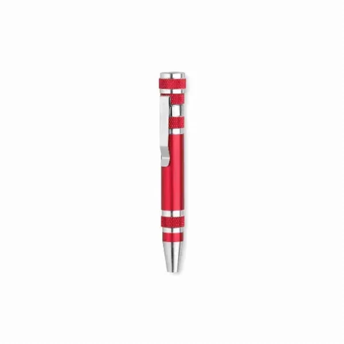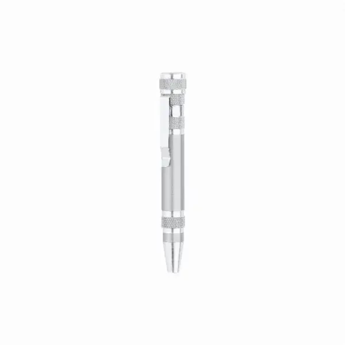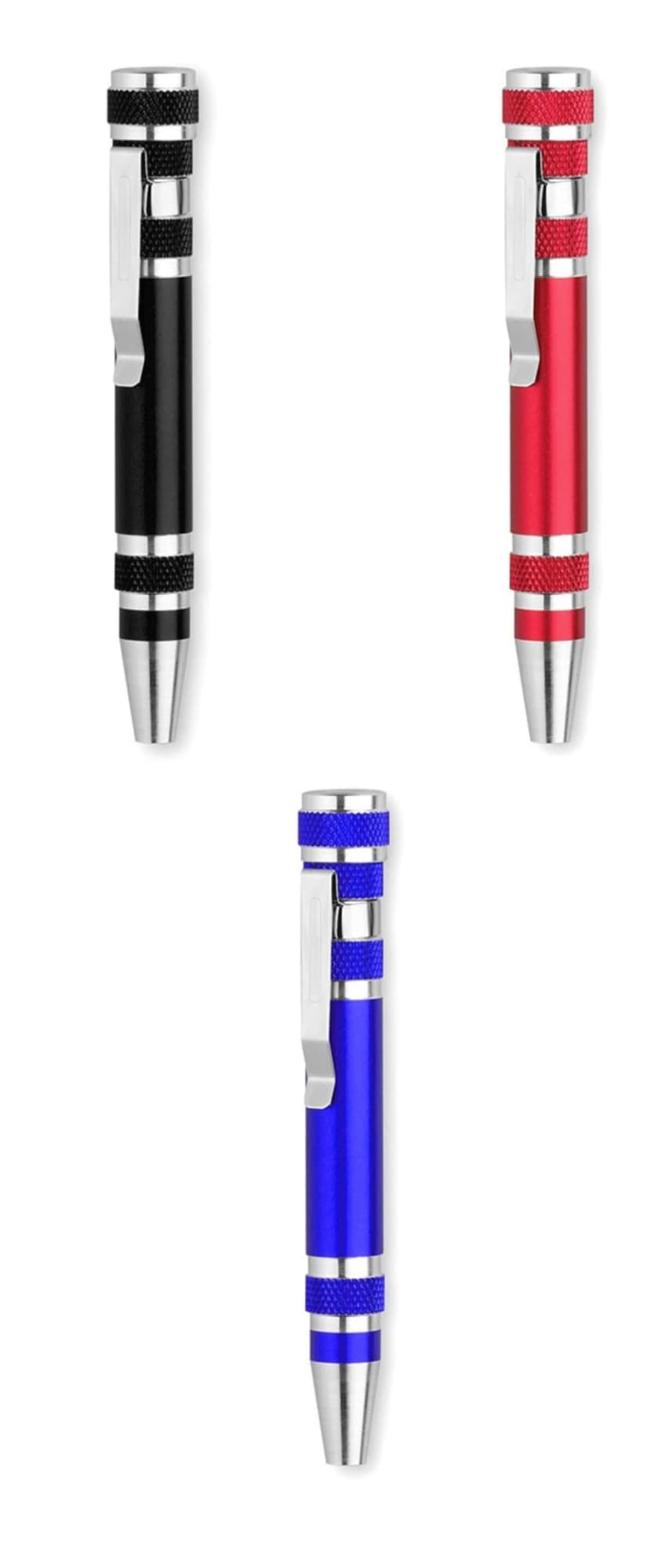 Aluminum multitool with 6 accessories in a wide range of bright metallic colors.