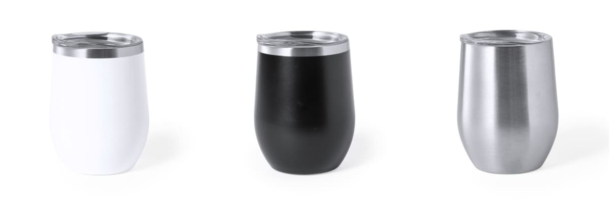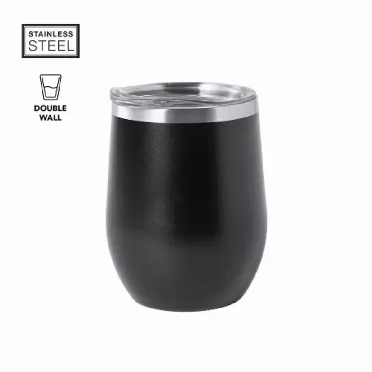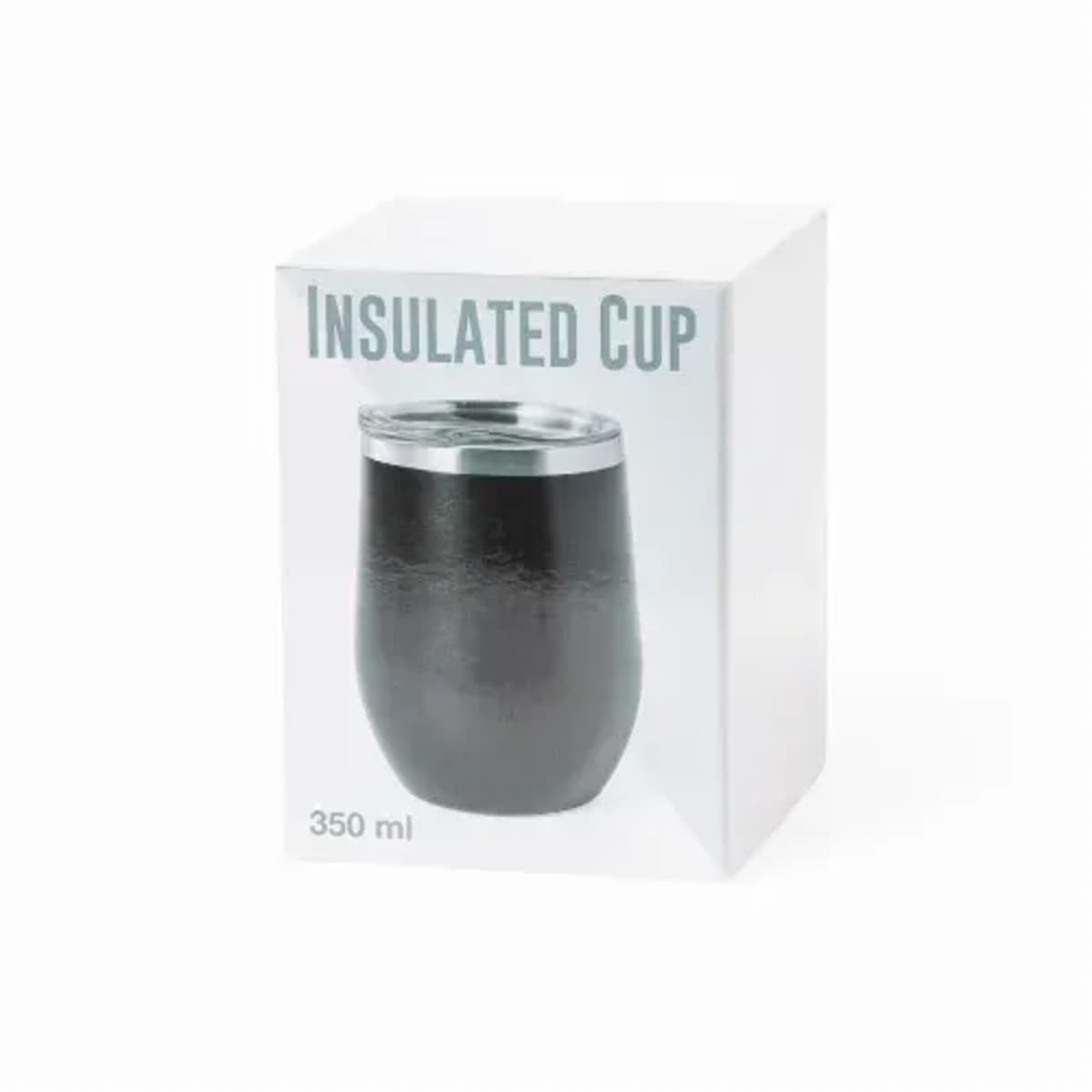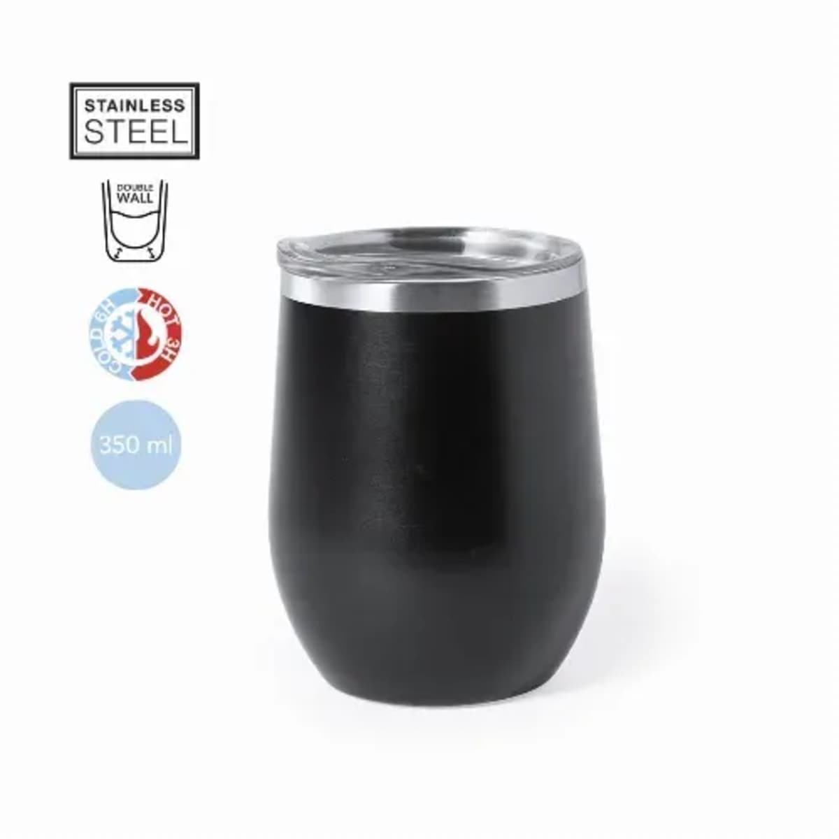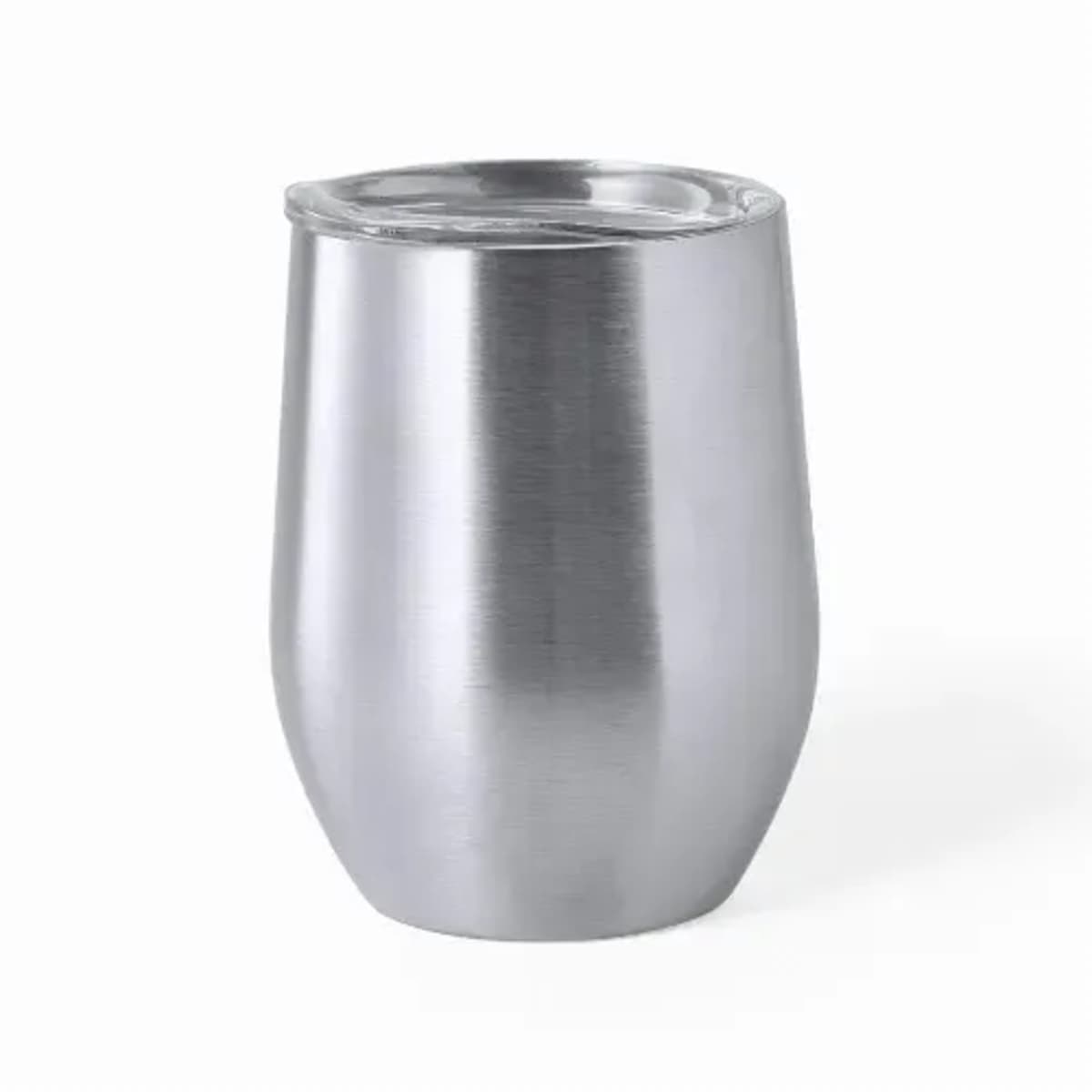 Table-top insulated cup made of stainless steel, with double wall and 350ml capacity.