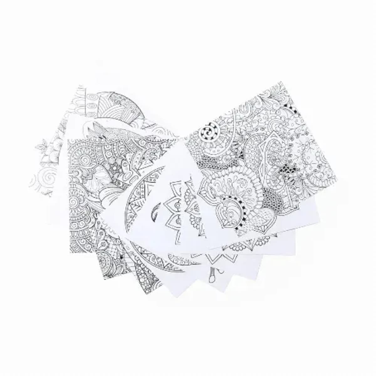Set of pencils and coloring sheets with mandala designs to color and relax.