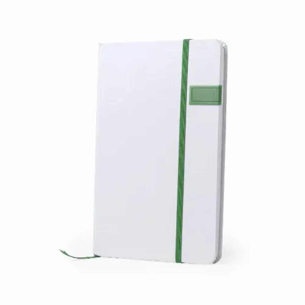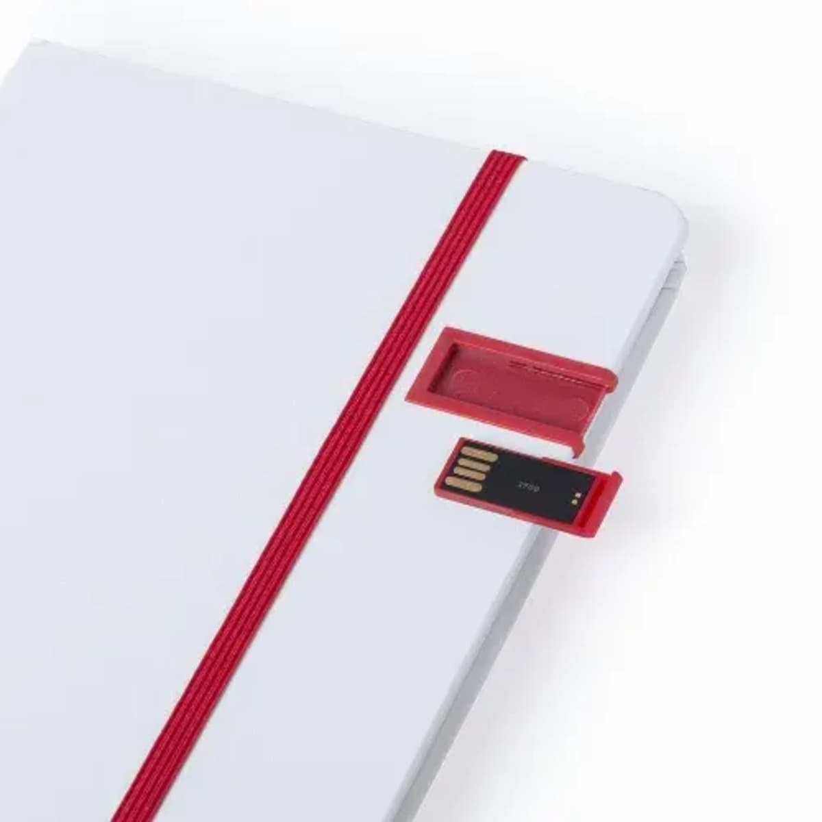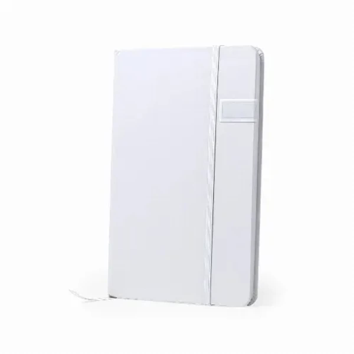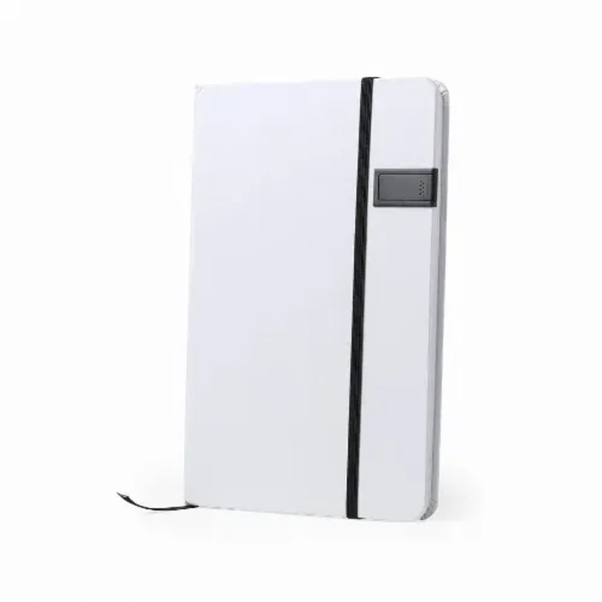 Stylish, white color finished notepad with 16GB USB flash drive integrated in the front cover.