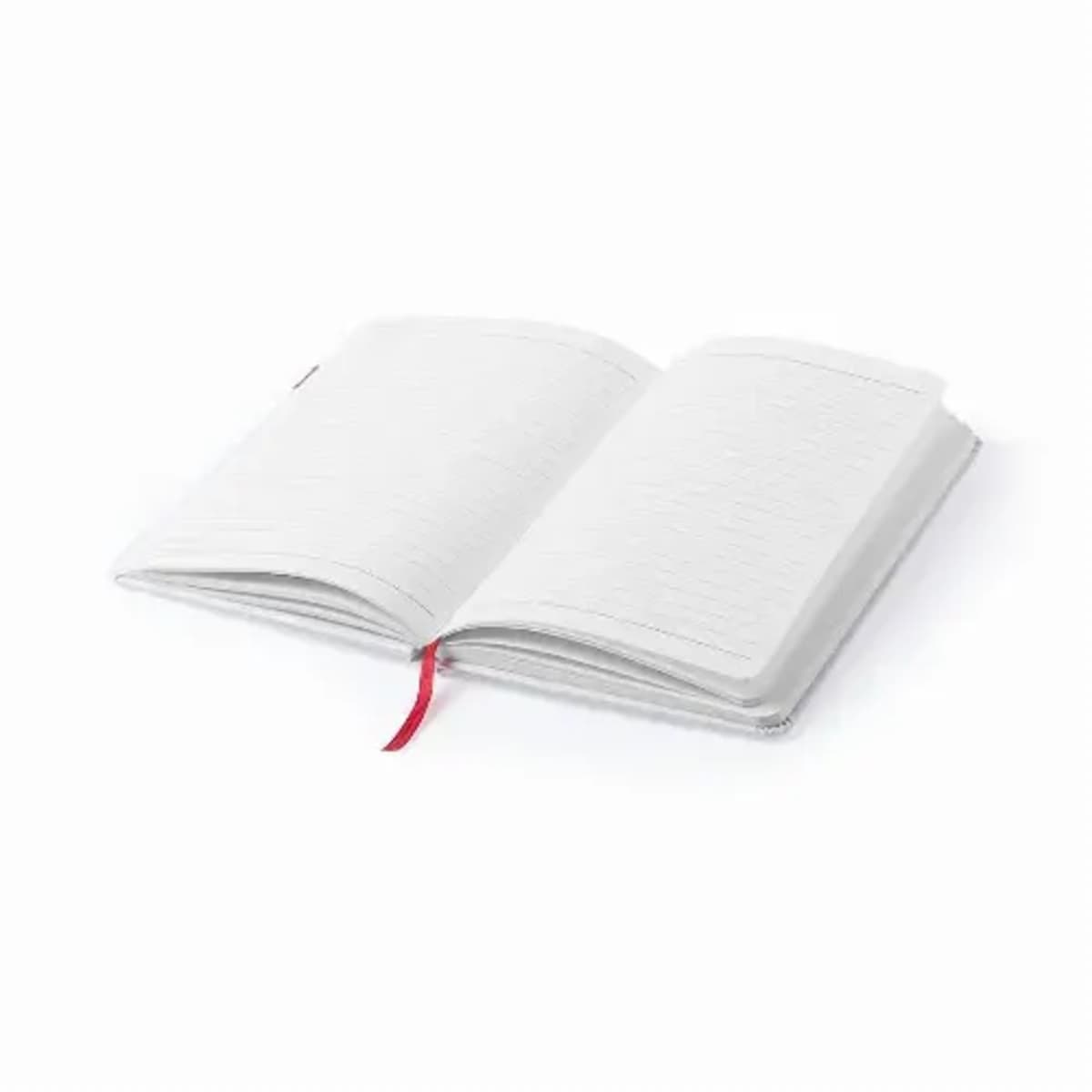 Elastic ribbon, USB memory and bookmark in matching, vivid colors. Including 100 sheets with striped outline.
