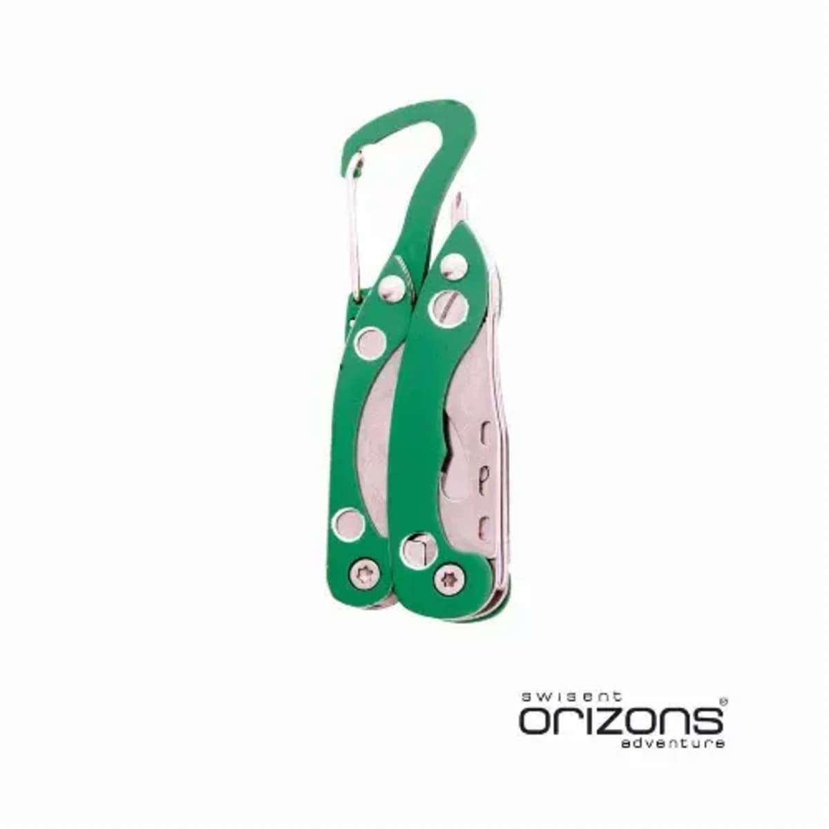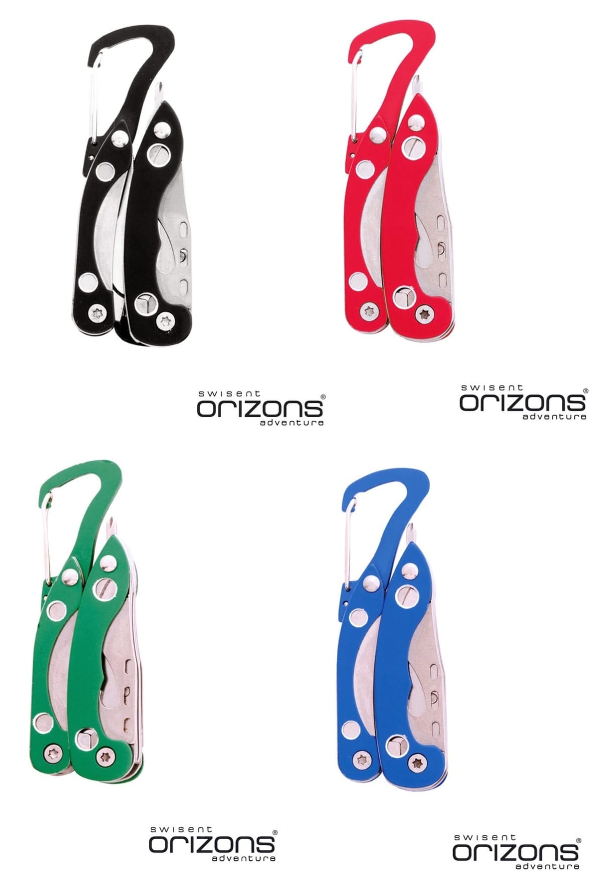Multi-tool by Orizons with stainless steel accessories of 6 functions and aluminum handle in bright tones.
