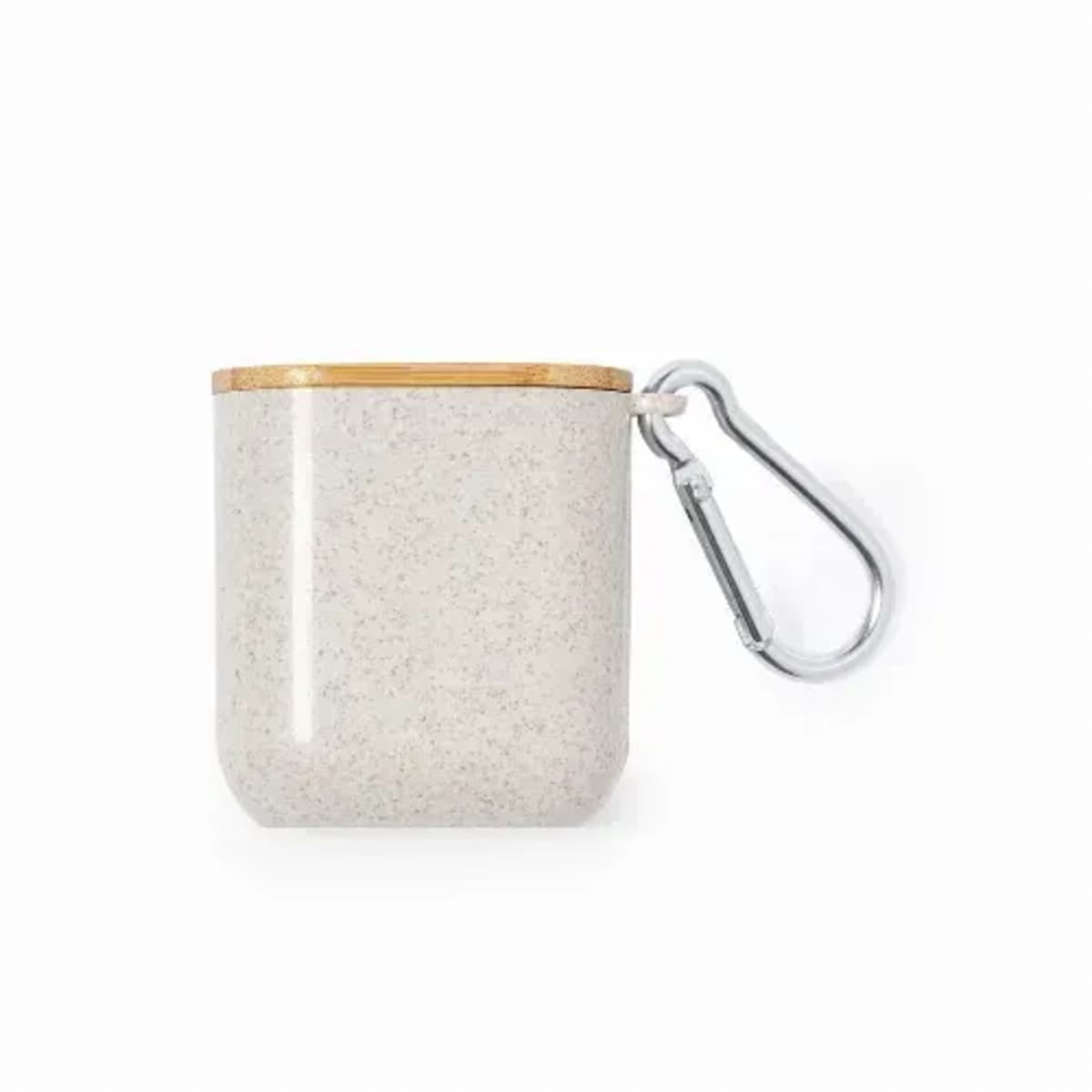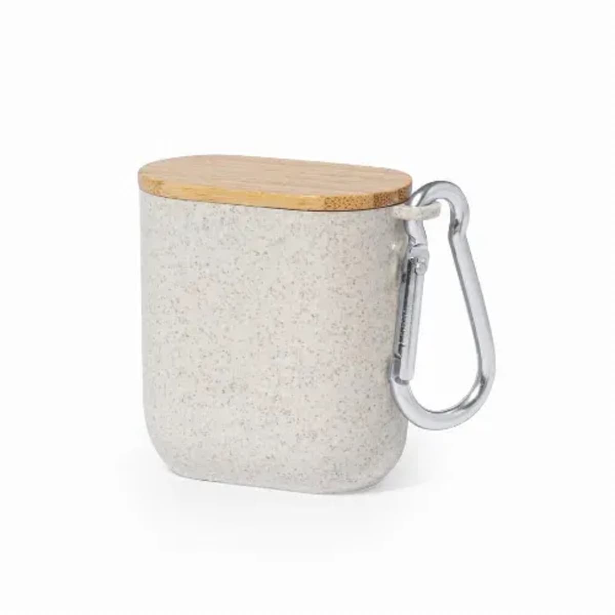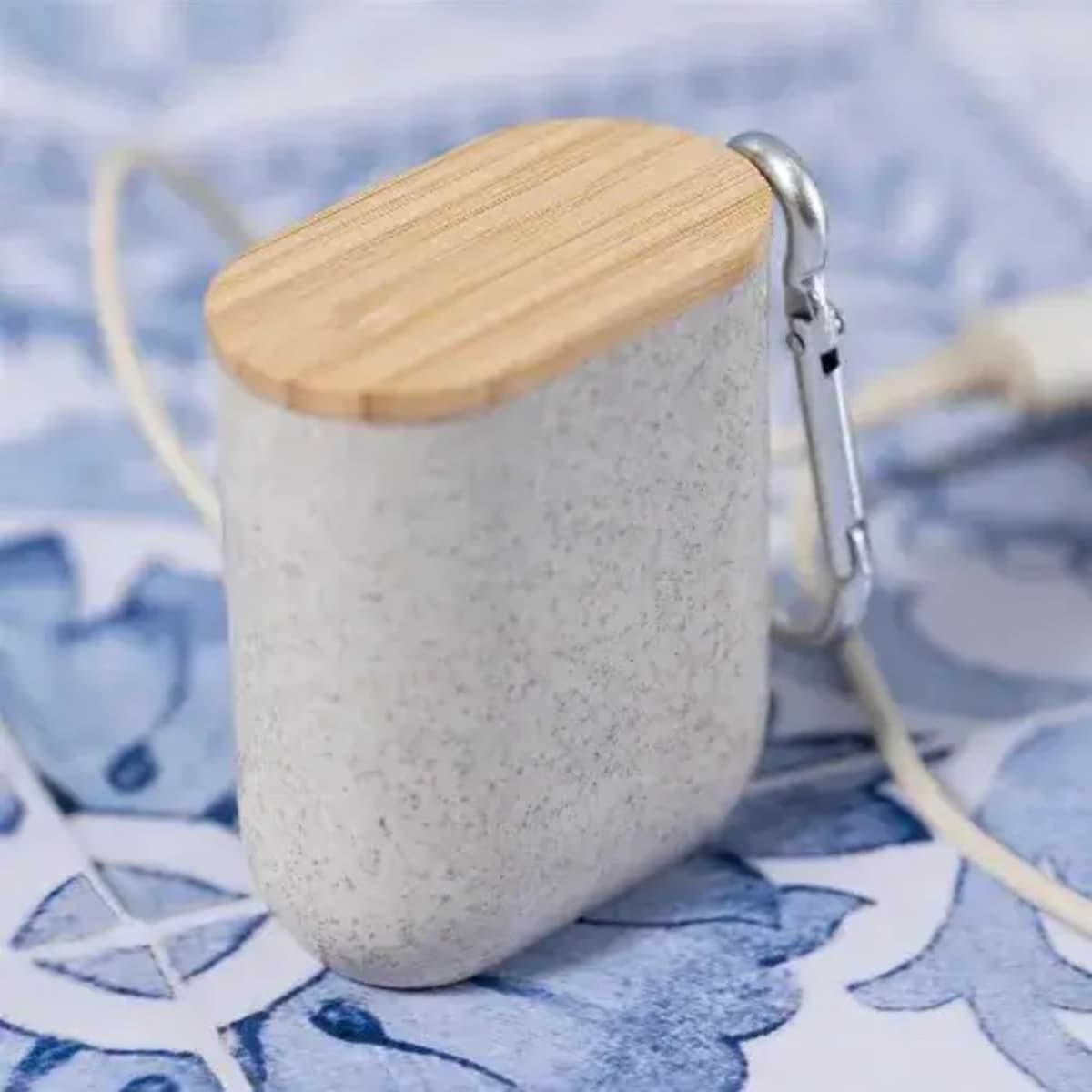 With Type-C and USB input connections and Type-C, Lightning, and Micro USB outputs. 5V DC 2.4A. Presented in an elegant design case made of wheat straw and bamboo closing lid, with holder function for smartphones. Made with vegetal elements to promot