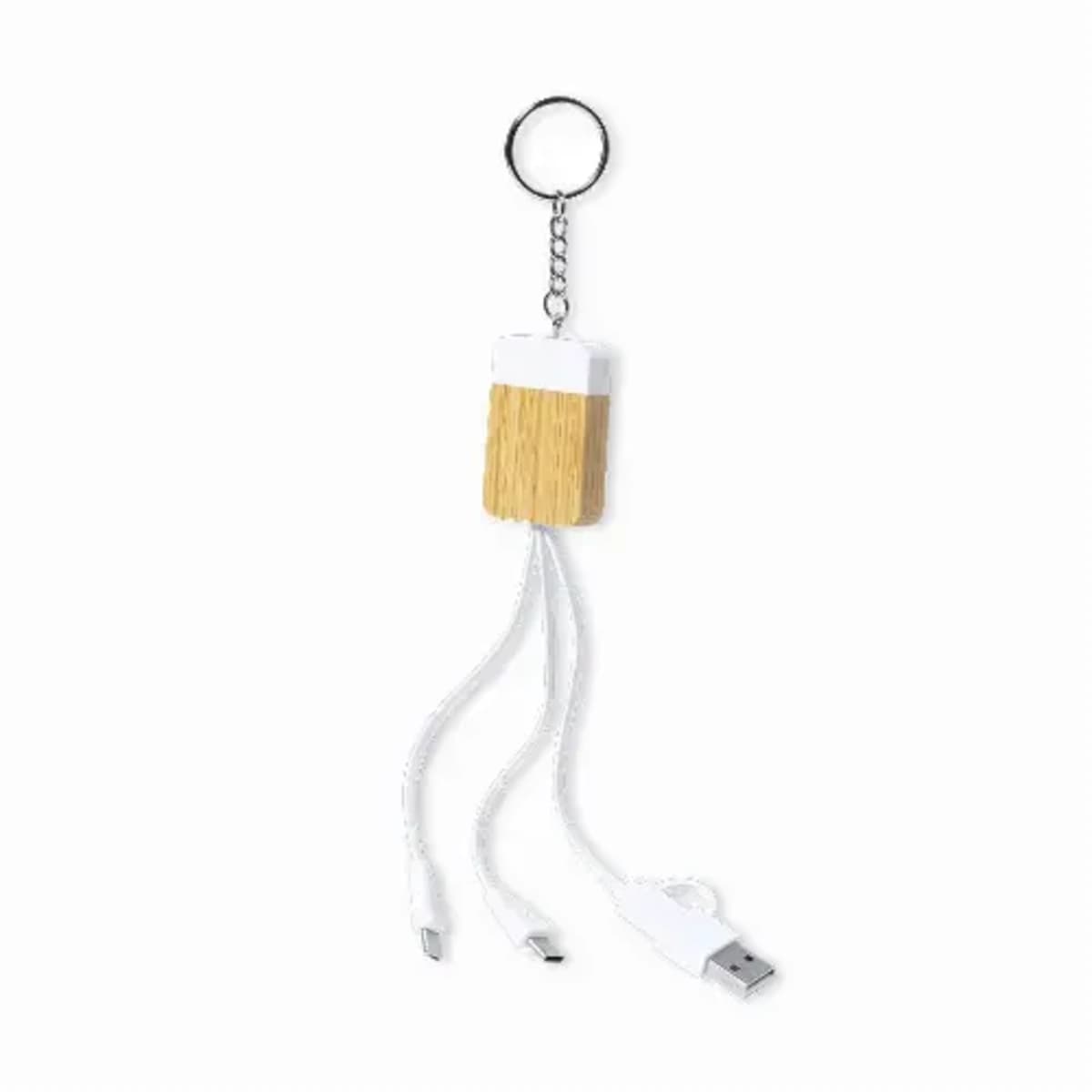 Charger cable with keyring, made in bamboo with marble extract insert.