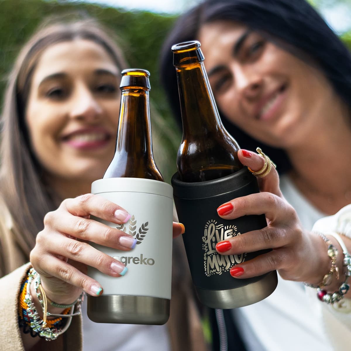 Smart 300ml double wall, vacuum insulated stainless steel stubby cooler with a powder coat finish, that will keep beverages cold for longer. The Brewski Pro has a secure screw on top, a built-in bottle opener, and fits most standard cans and bottles. BPA-free and laser engraves to a shiny steel finish. This product is not dishwasher safe and handwashing is recommended. Features: * 300ml double wall vacuum stubby cooler * Fits most standard cans & bottles * Built-in bottle opener * Multiple uses: stubby holder, can cooler, and a tumbler all in one * Presentation: Natural gift box