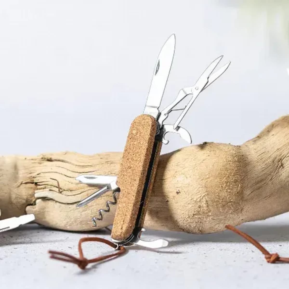 Nature line multi-purpose knife, with a resistant body in stainless steel and a natural cork handle.