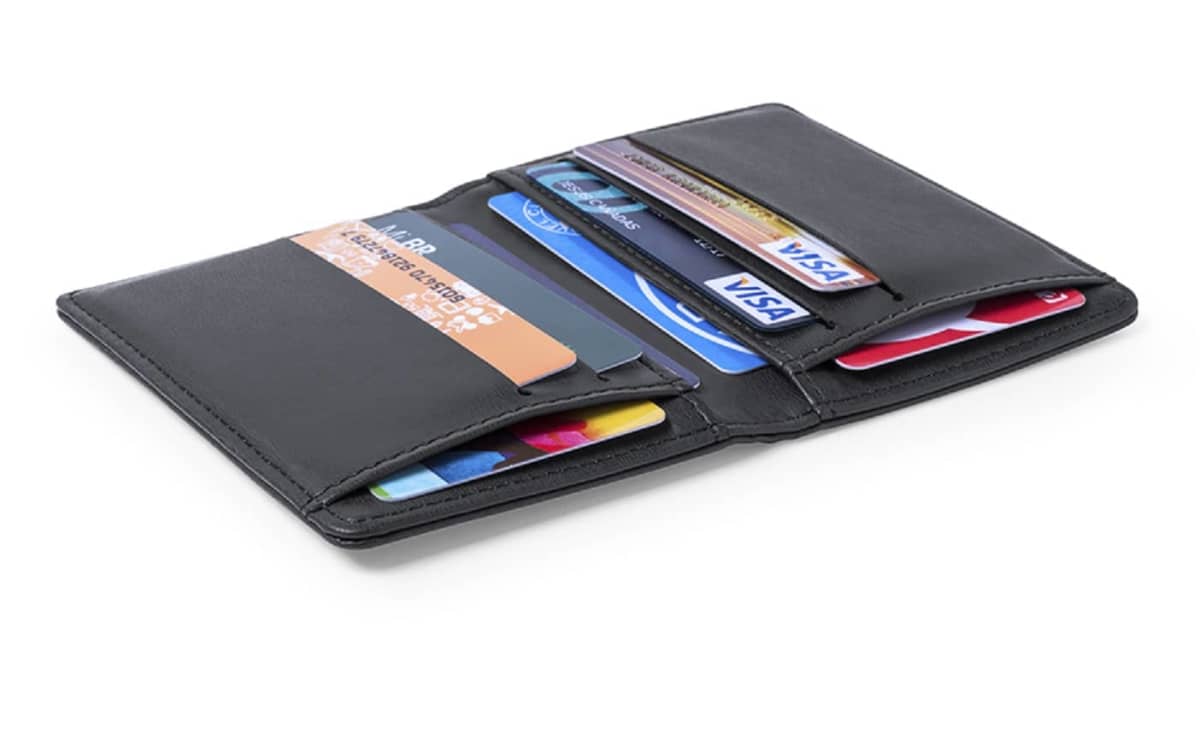 Card holder with RFID (Radio Frequency Identification) security technology that keeps card data safe.