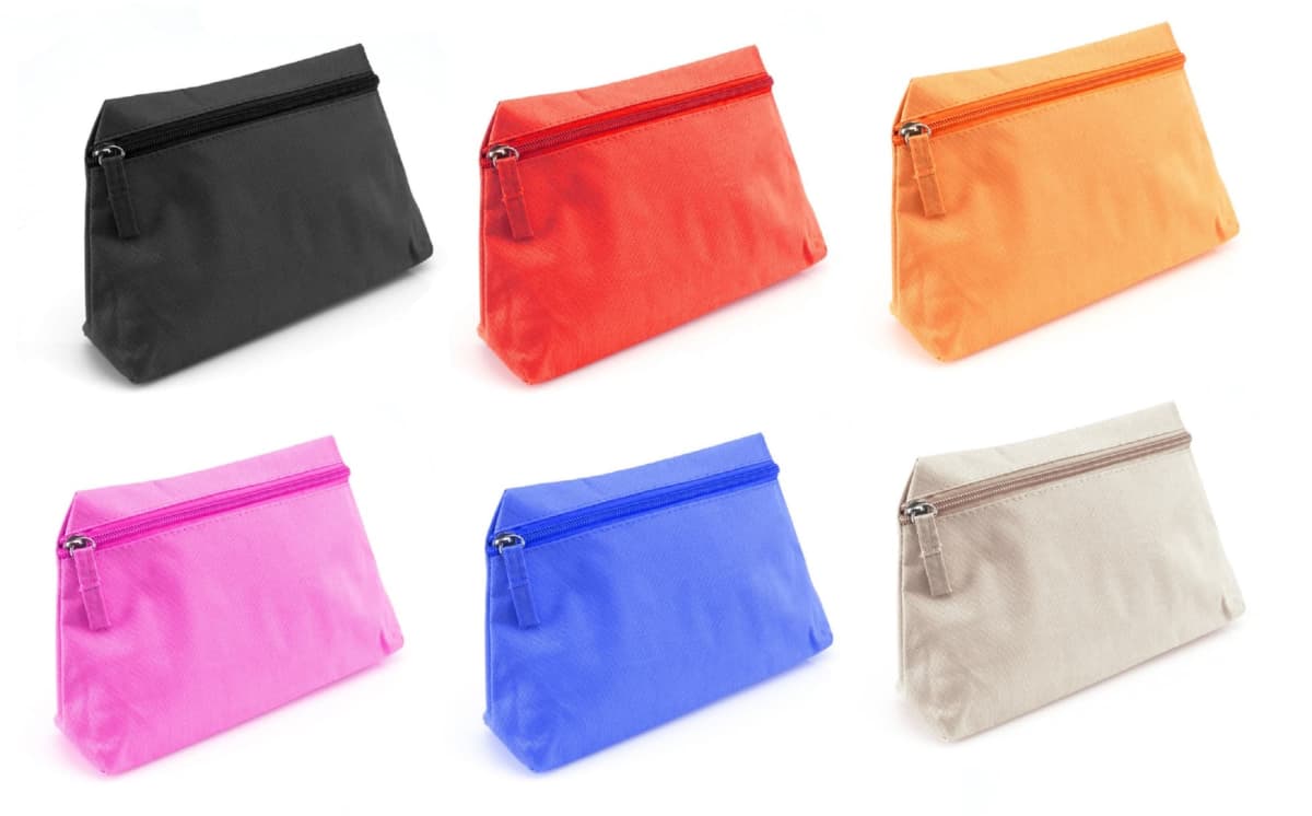 Multi purpose beauty bag in resistant 600D polyester of varied range in bright tones.