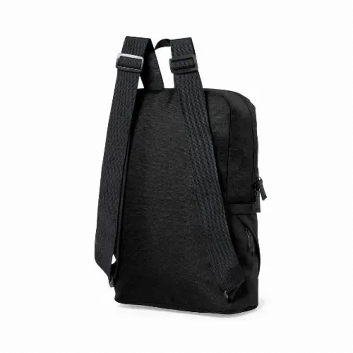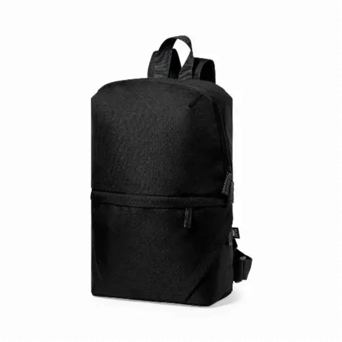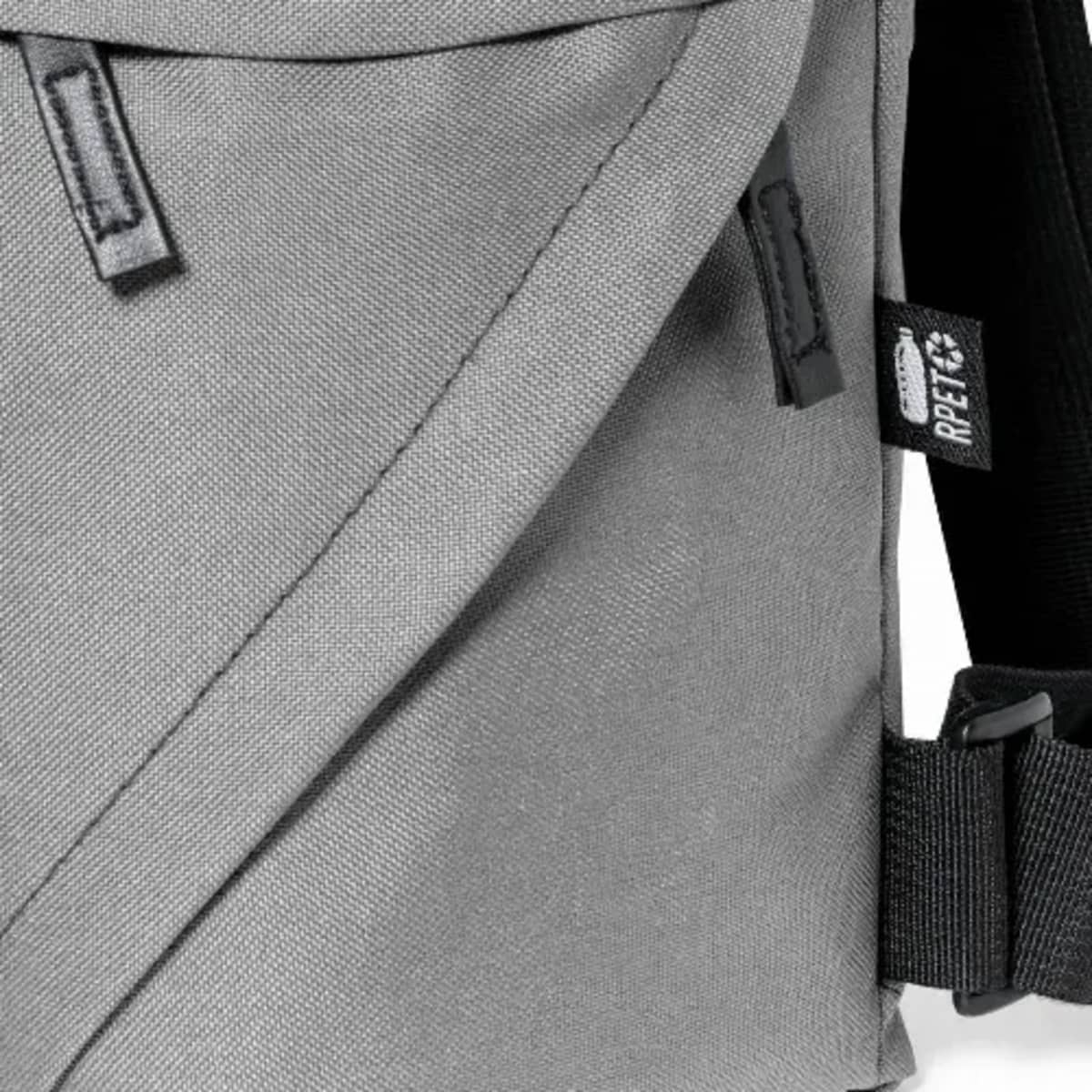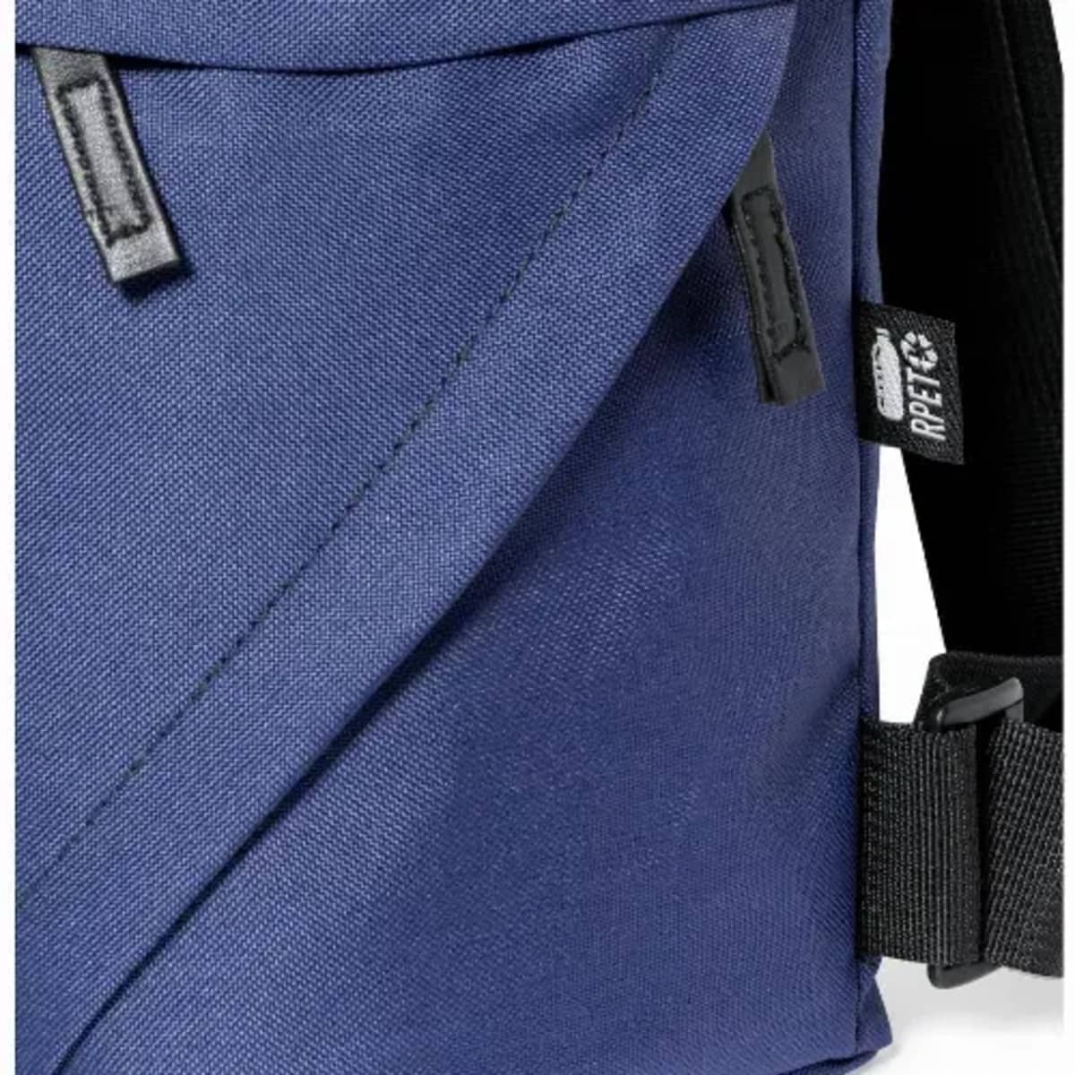 Features:  Main compartment with invisible zip closure, double outside pocket and adjustable shoulder straps. Available in a variety of colours, outside label with the RPET distinctive. RPET material is made from recycled plastic, to encourage the reuse of p