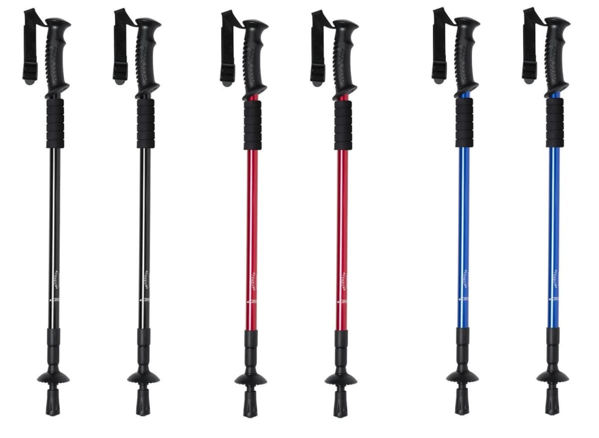 Set of folding poles with aluminum body, anti-shock mechanism and soft foam hand rests.