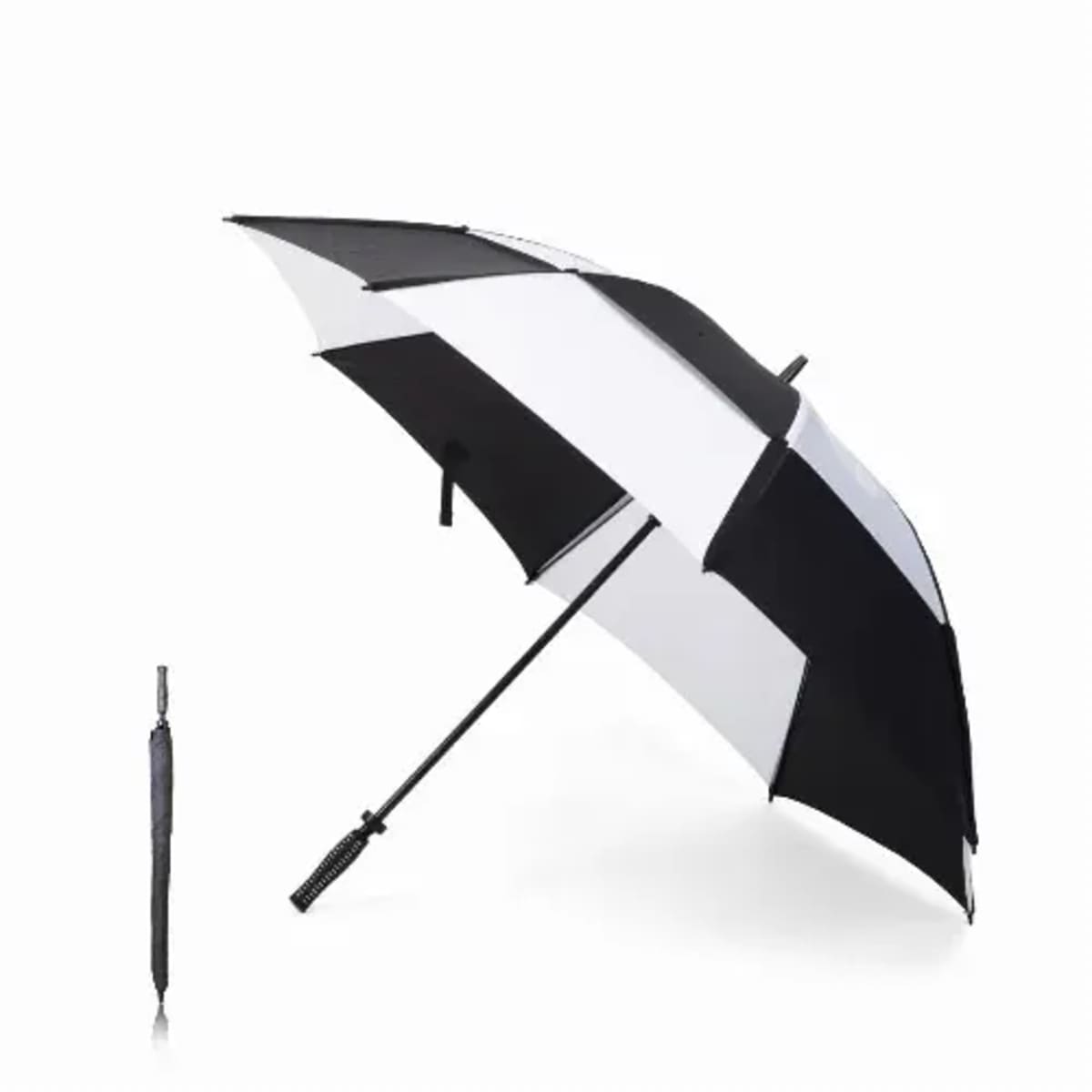 Golf umbrella with 8 panels in a sober two-tone design and 135cm diameter, with manual opening.