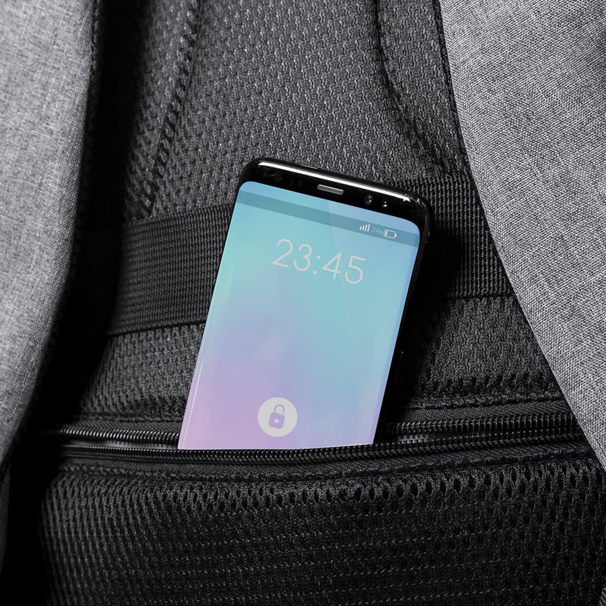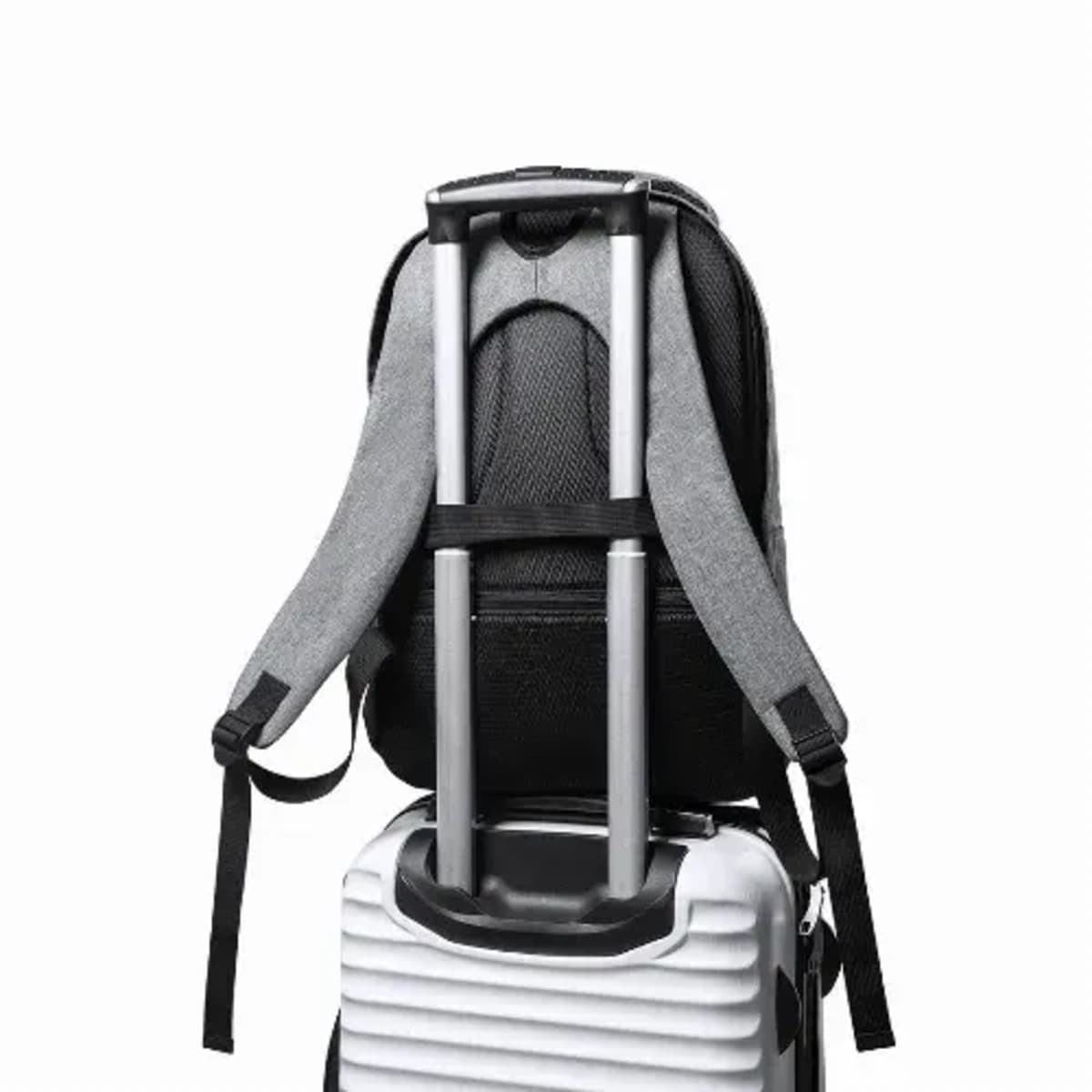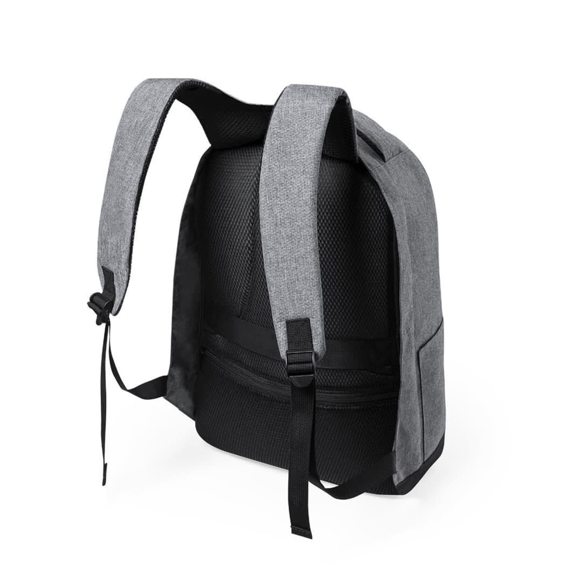 Nature Line anti-theft business backpack in durable 600D RPET melange effect, made from recycled plastic to encourage the reuse of plastic waste and contribute to the sustainability of the planet.