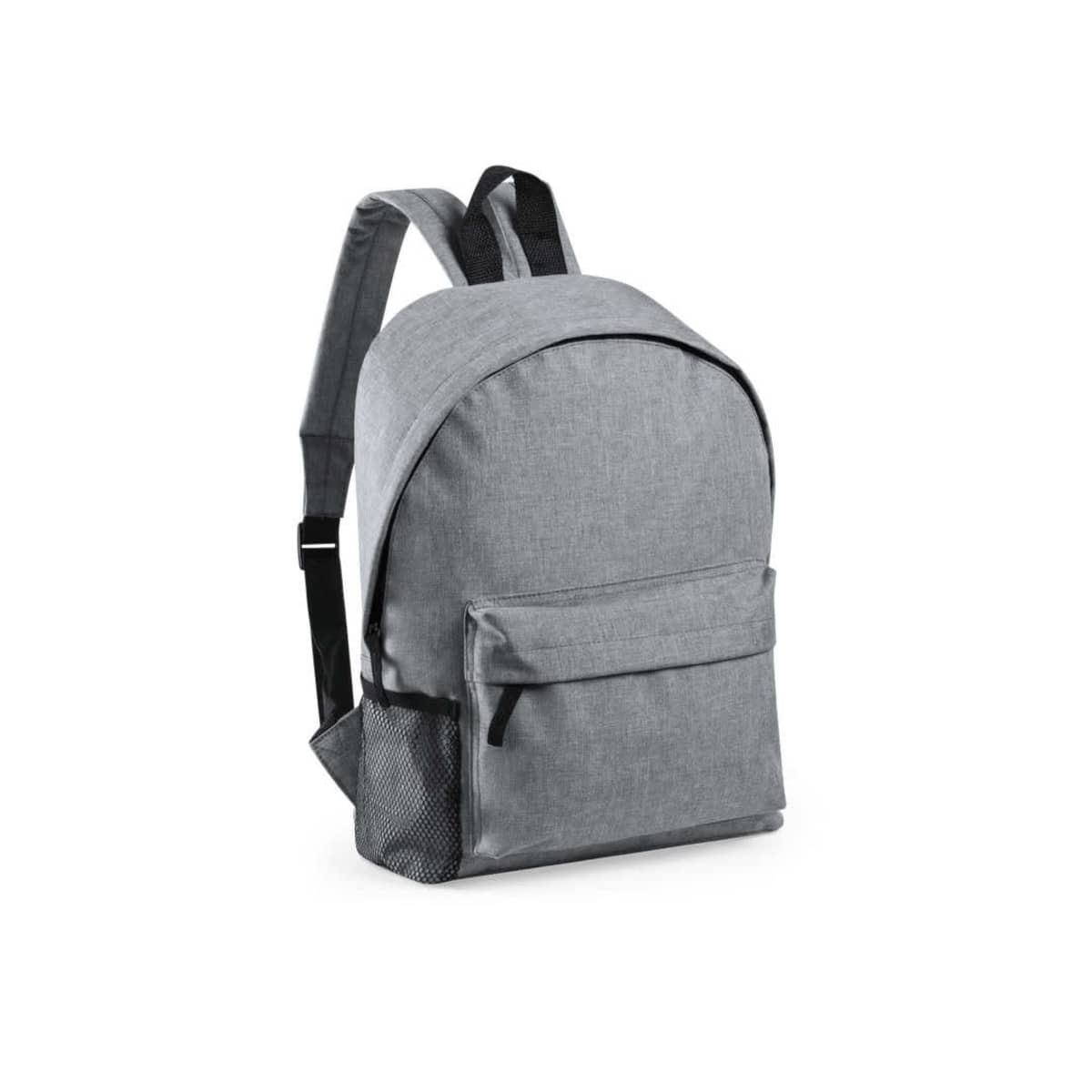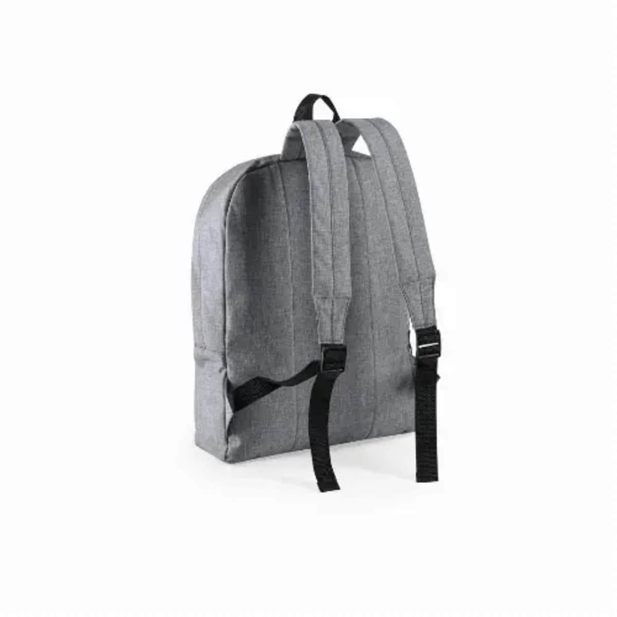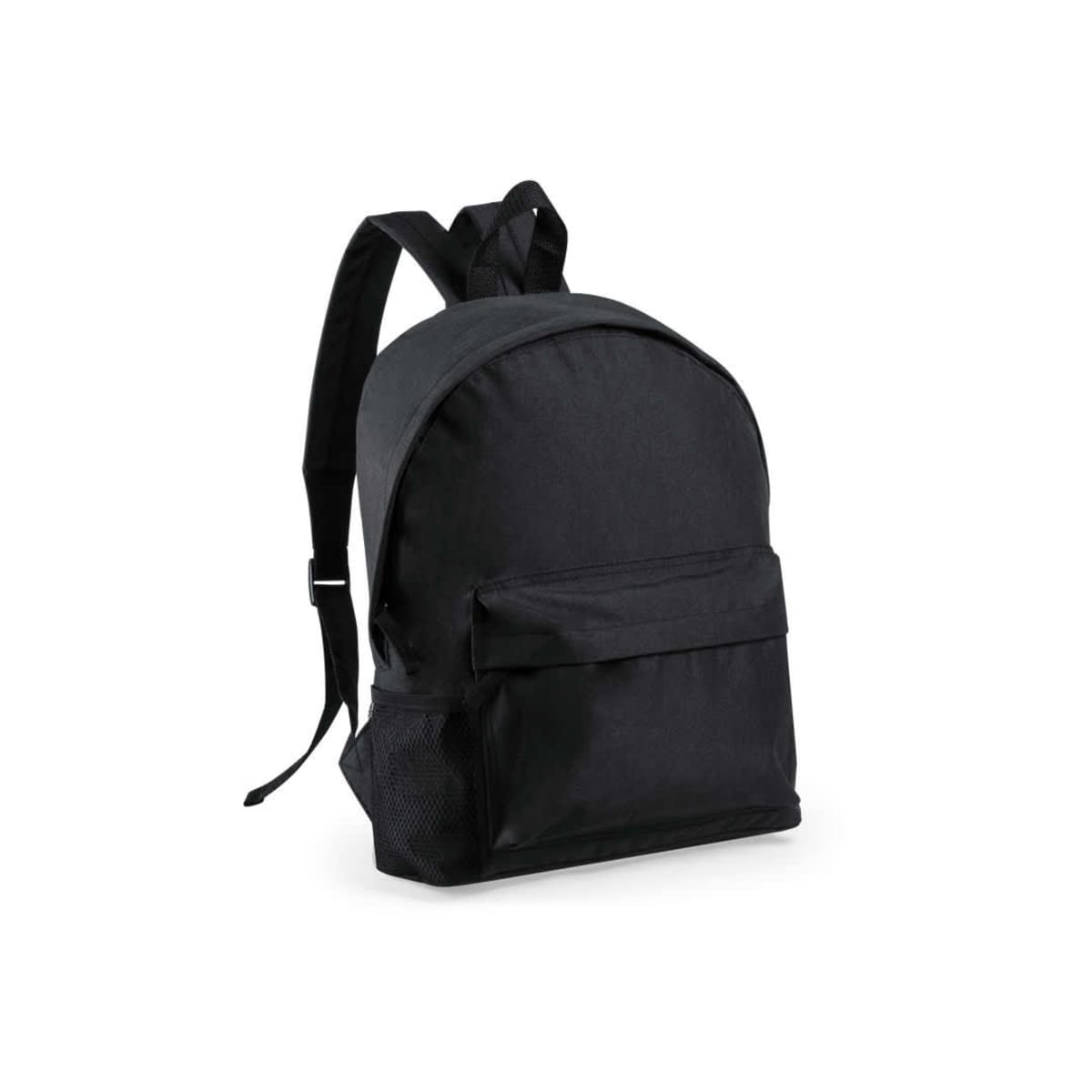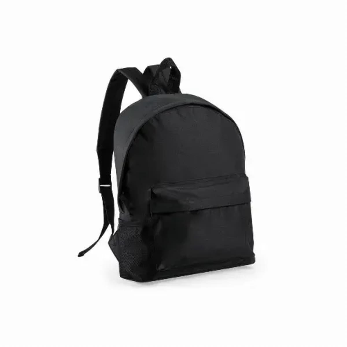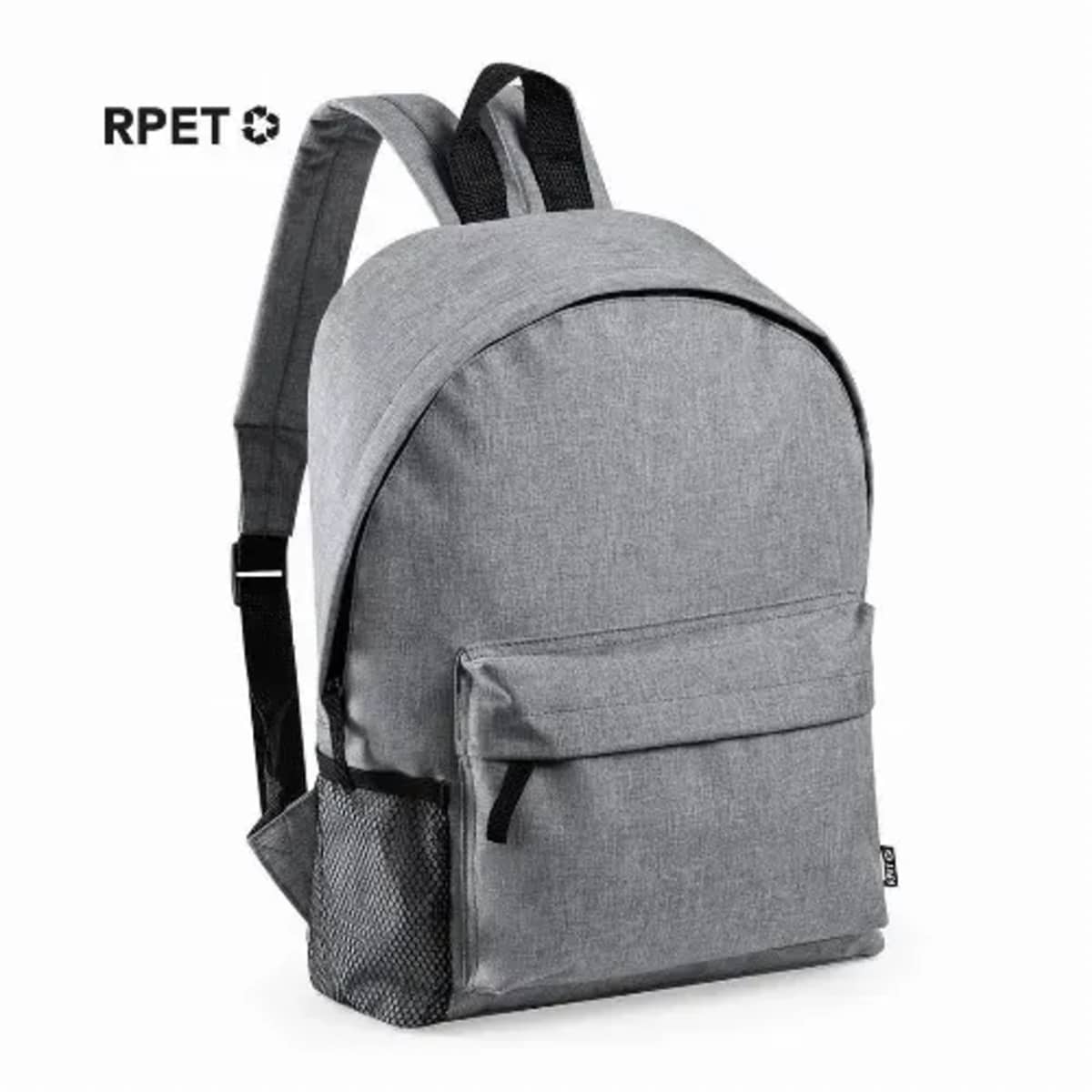 With zipper closure and front pocket, reinforced corners, pullers with straps for easy opening and accessories in black color. Padded back and adjustable shoulder straps. RPET distinctive in label.