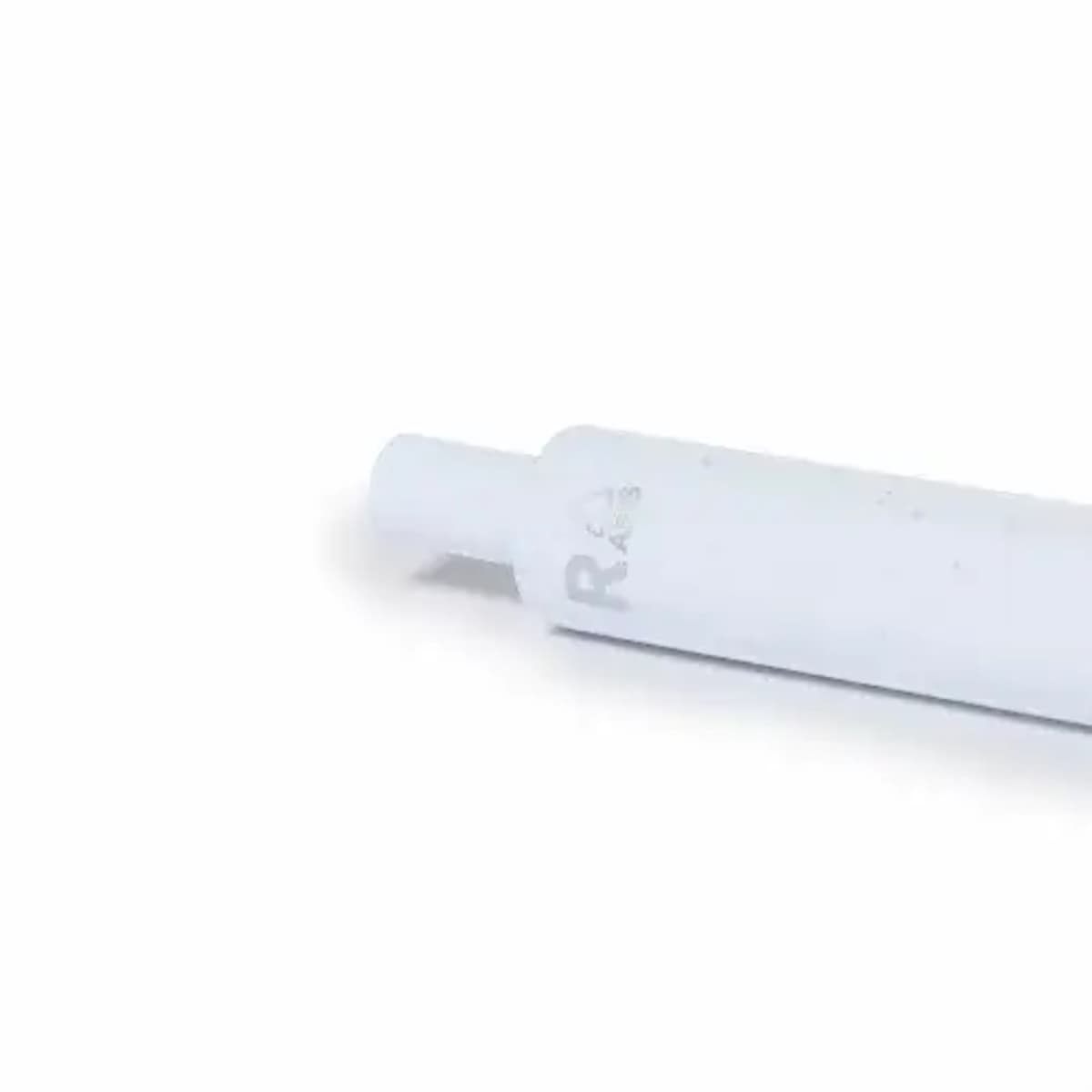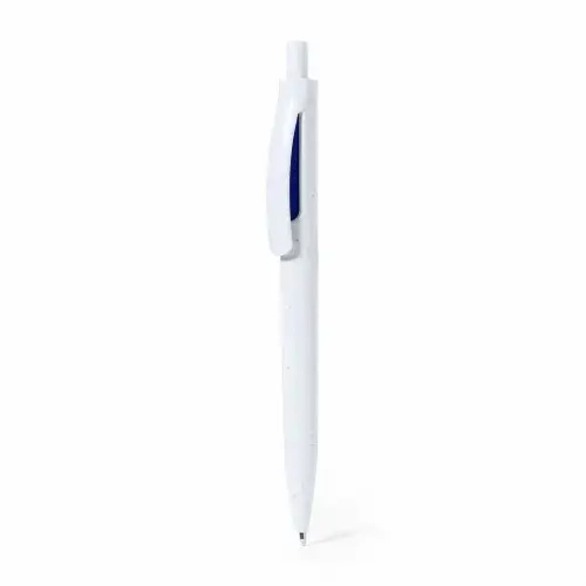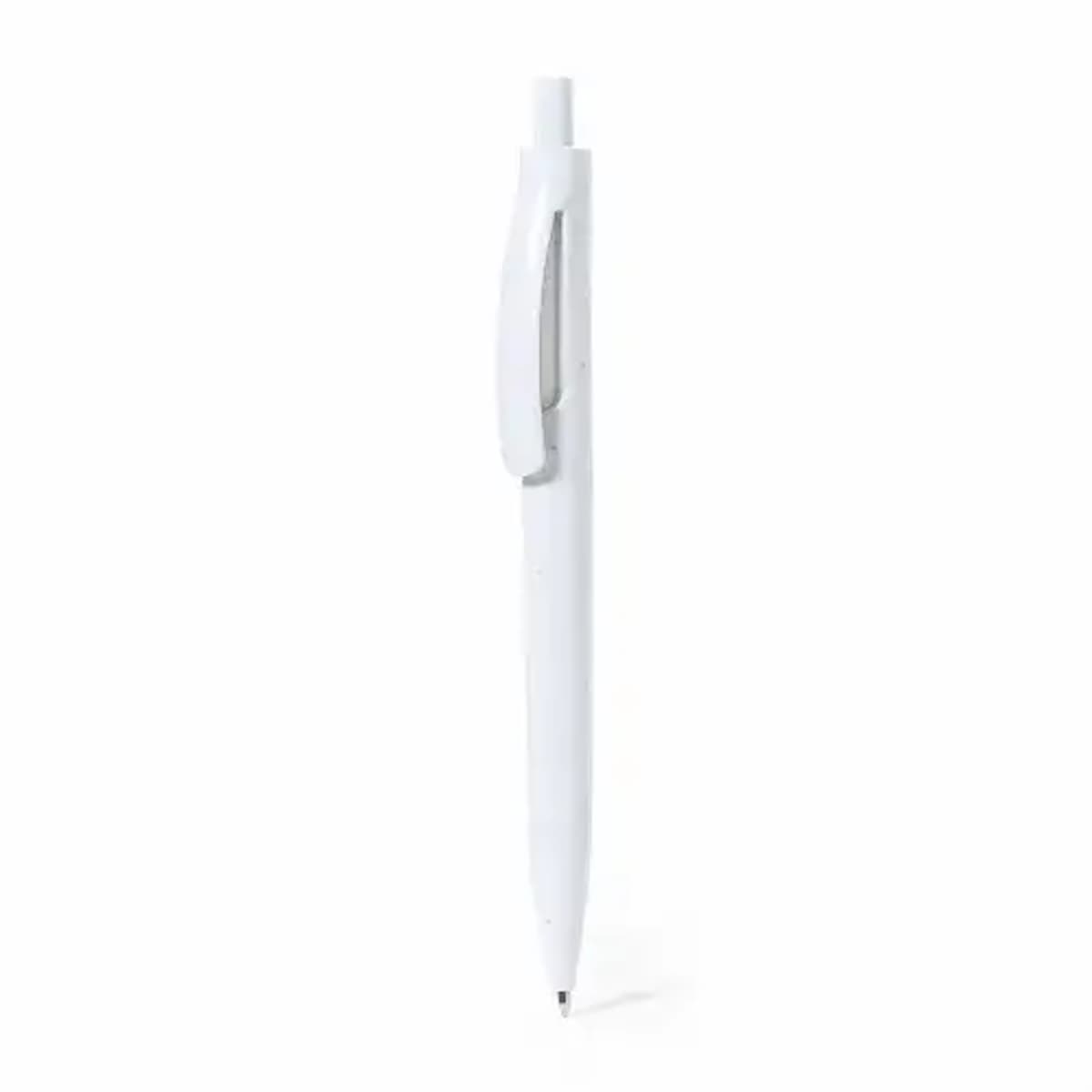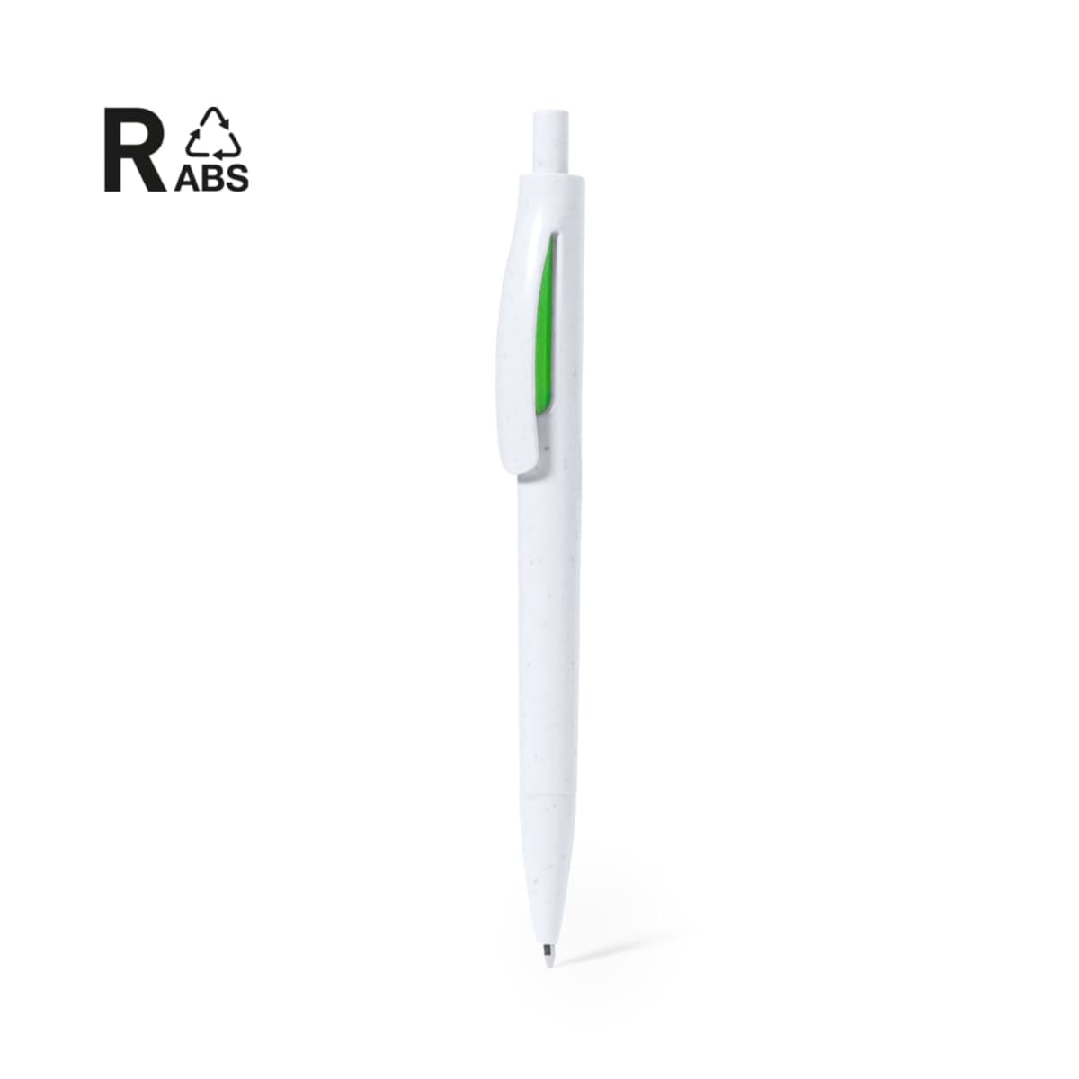With vivid coloured fittings and a smooth solid white barrel. Recycled ABS logo on the top of the pen.