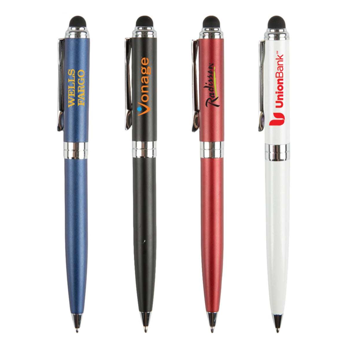 MOVING SALE! 50% OFF ALL UNIT PRICING The Canterbury Stylus pen is an elegant brass twist action pen with silver accents and a stylus. Add a touch of elegance to your company’s promotional event by featuring this fantastic marketing tool. The stylus works on all touch screen devices; such as smart phones, tablets and iPhones. This product includes black ink.