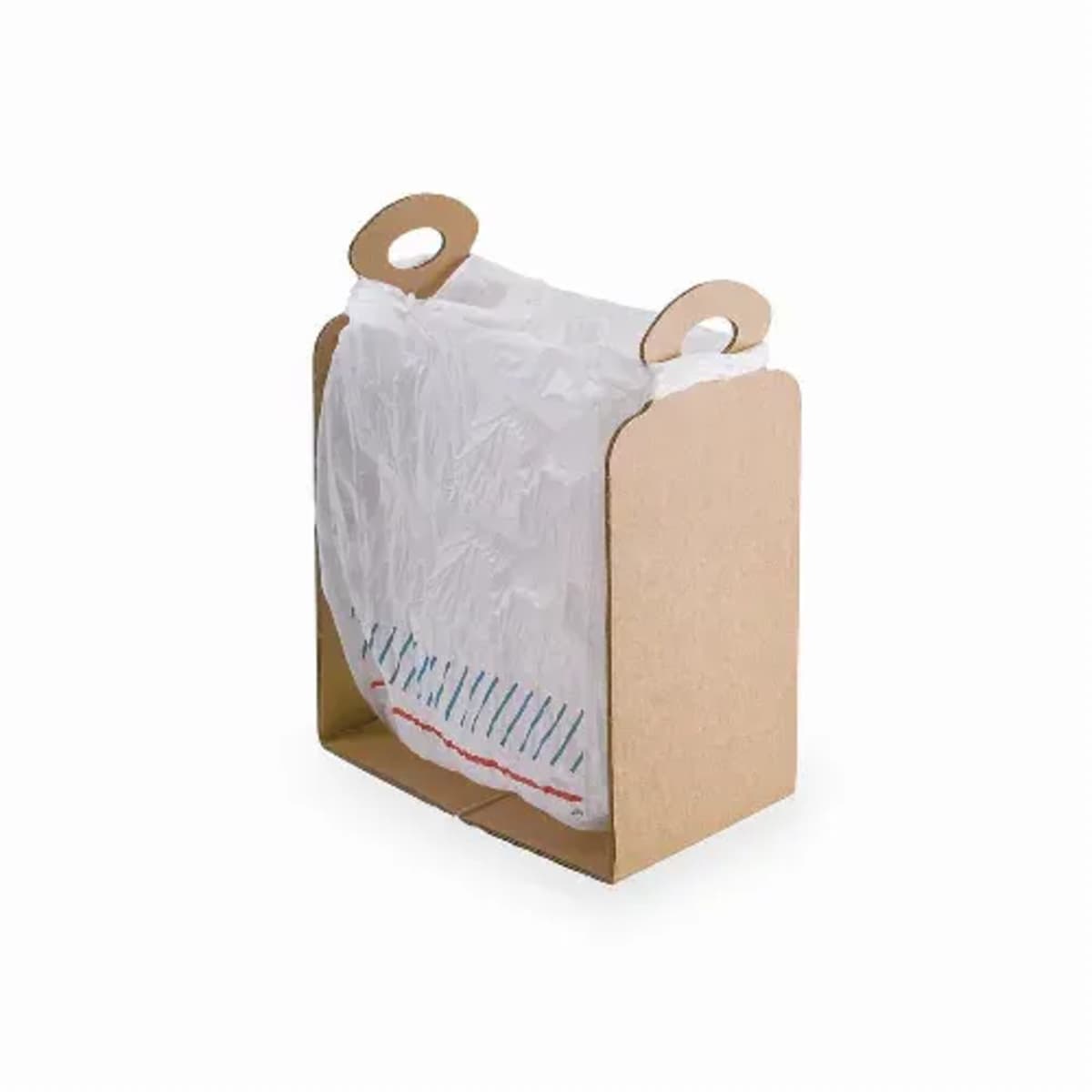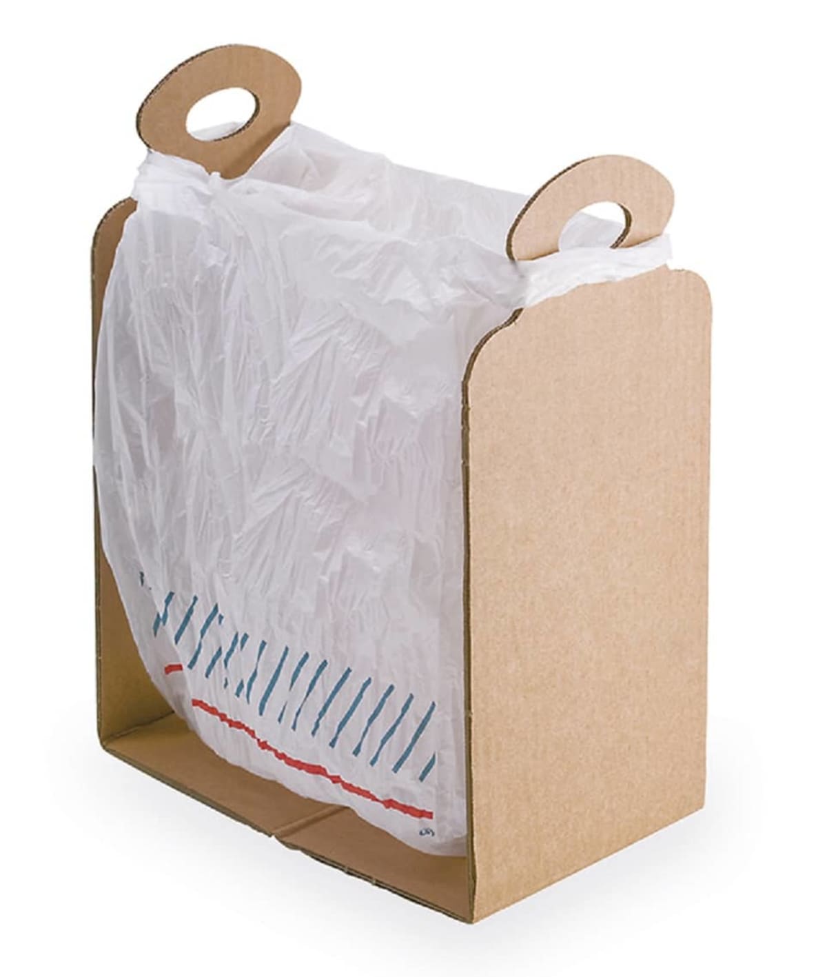 Trash bag holder in resistant natural cardboard, suitable for a wide range of bag sizes..